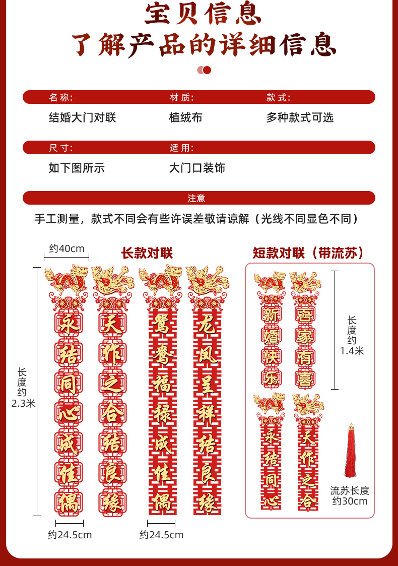 • 2.3m 안뜰 문에 적합한 Flocked Cloth Type C [용과 봉황의 결혼 대련 1세트]