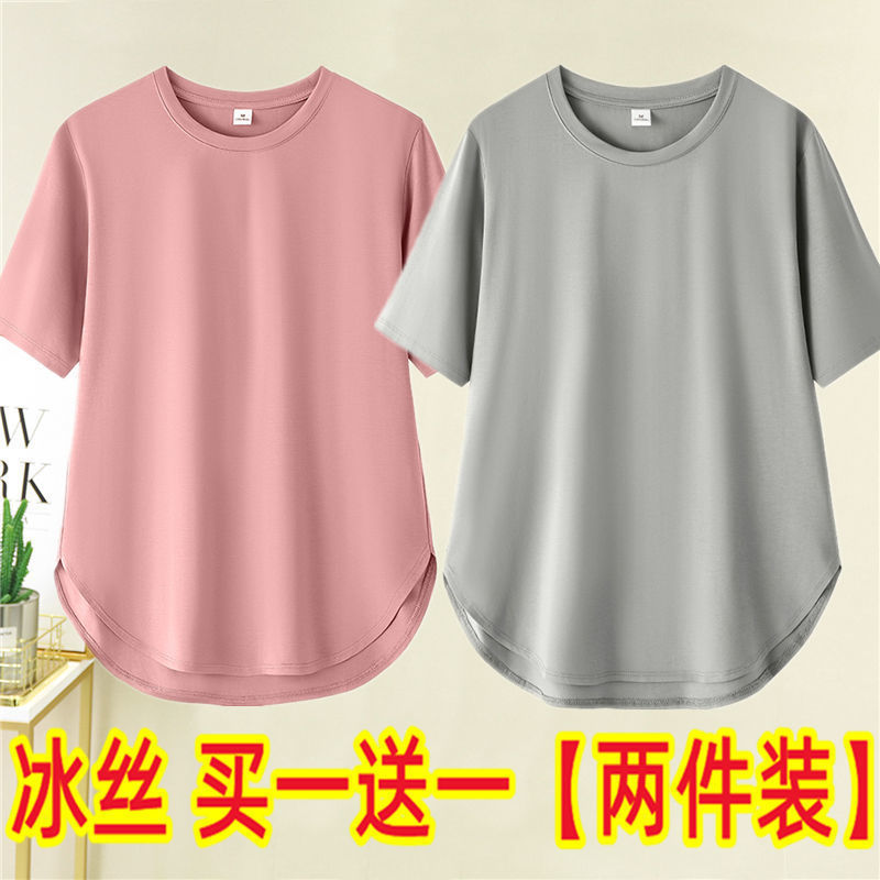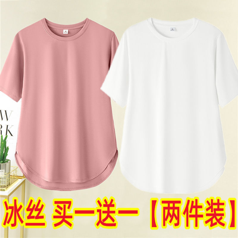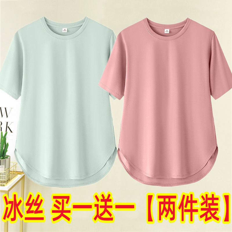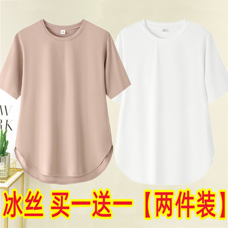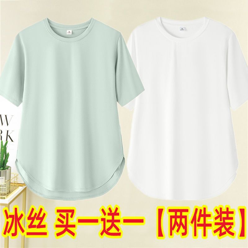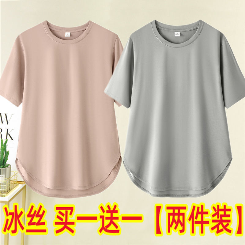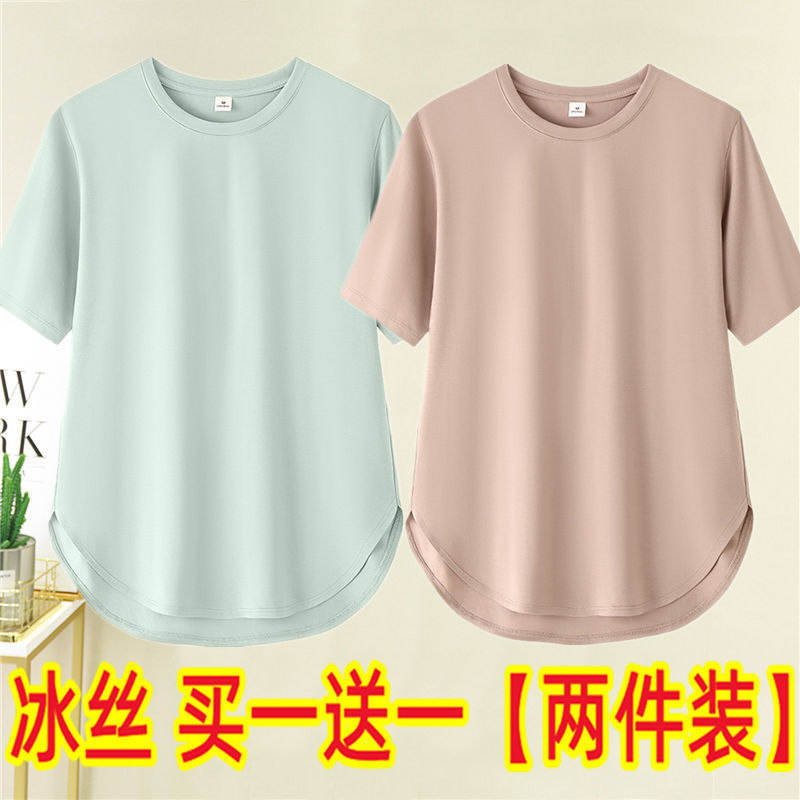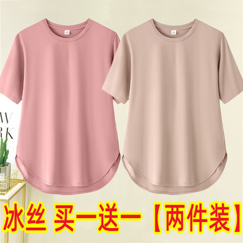 싱글/투피스 아이스 실크 반팔 티셔츠 여자 여름 라운드 넥 올매치베이스 셔츠 여자 아크 하단 티셔츠 탑