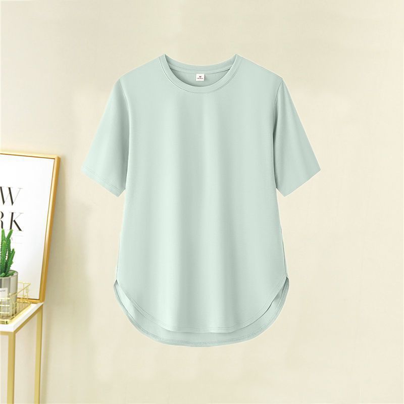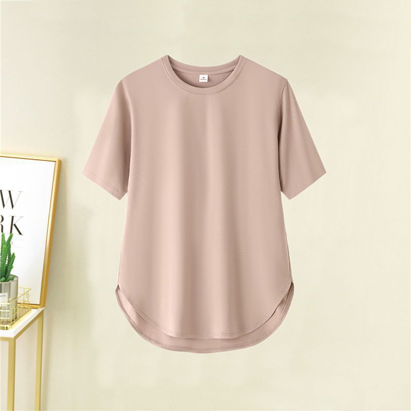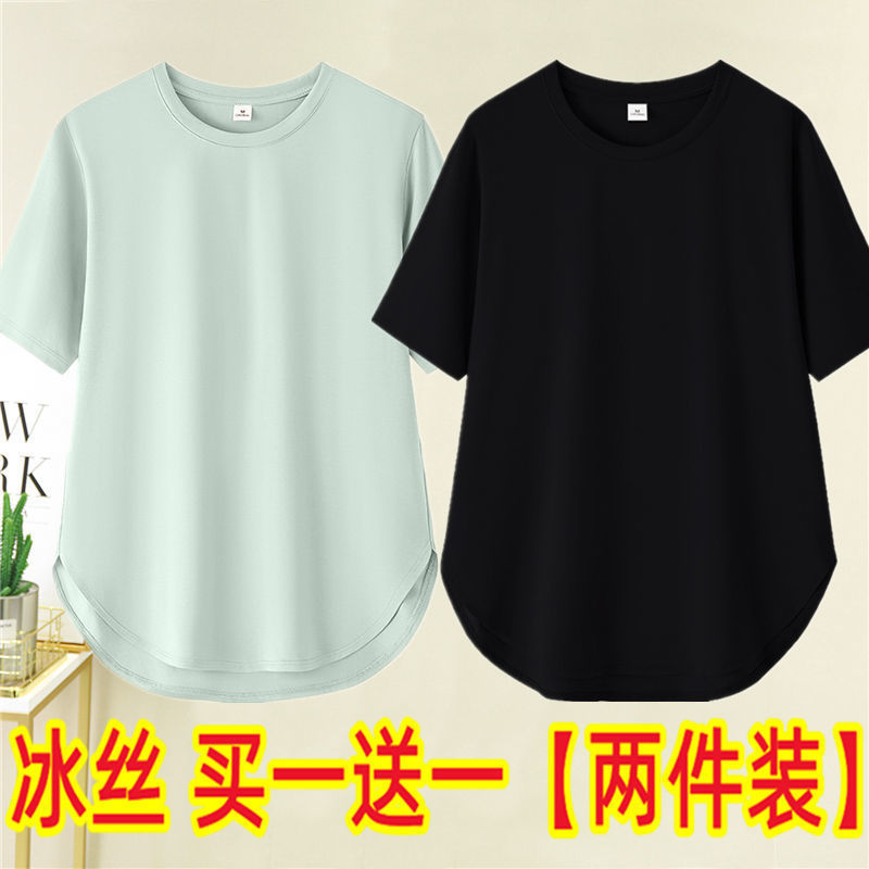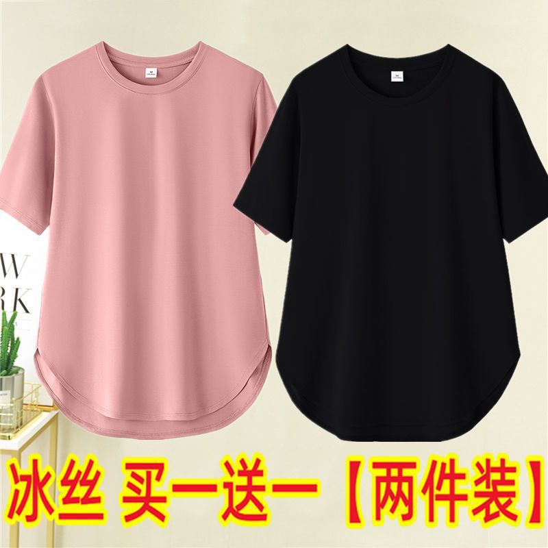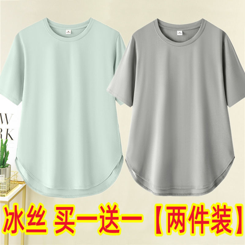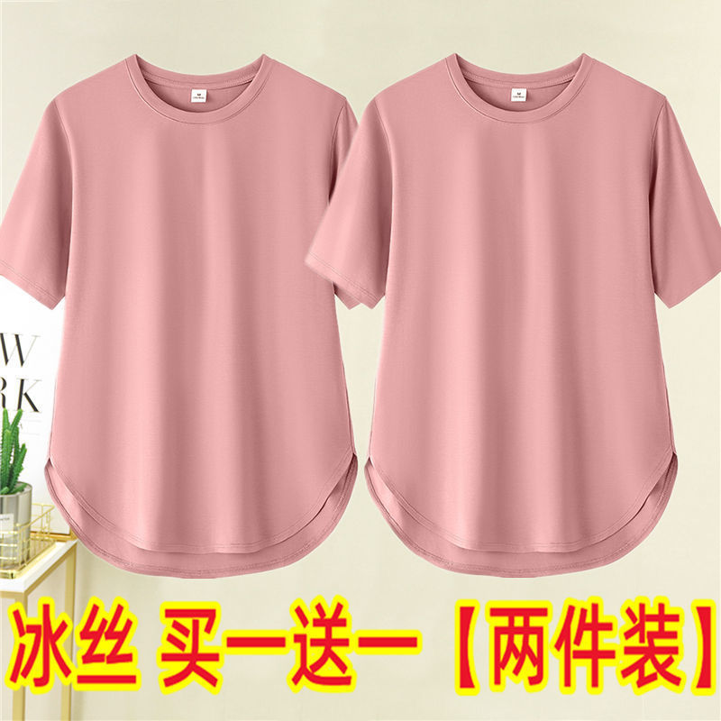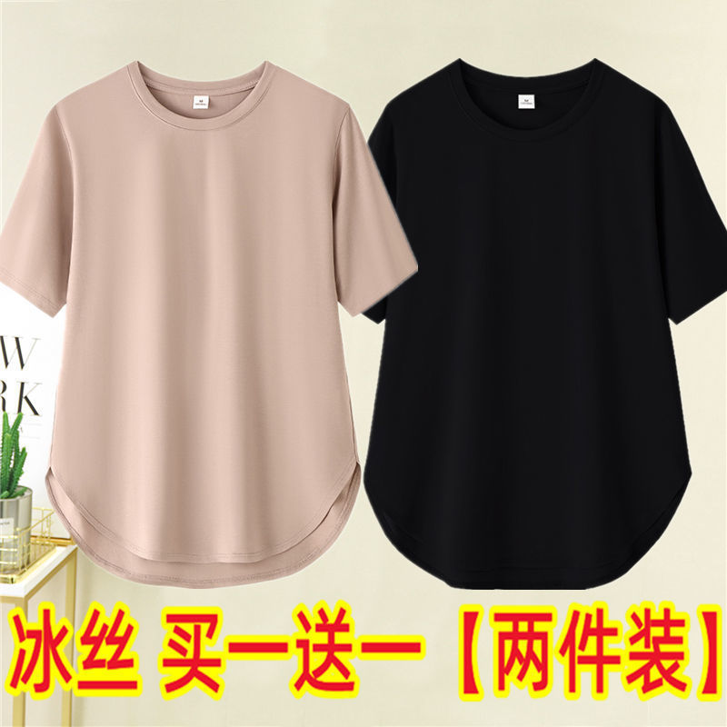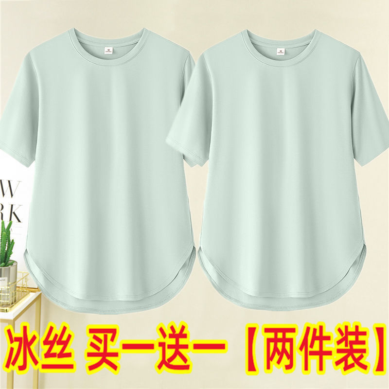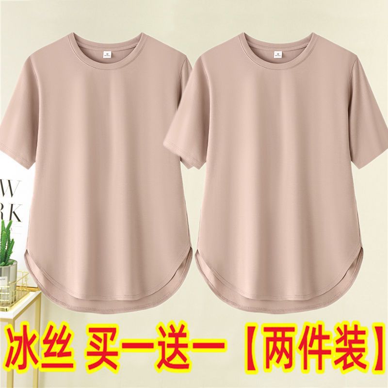 싱글/투피스 아이스 실크 반팔 티셔츠 여자 여름 라운드 넥 올매치베이스 셔츠 여자 아크 하단 티셔츠 탑