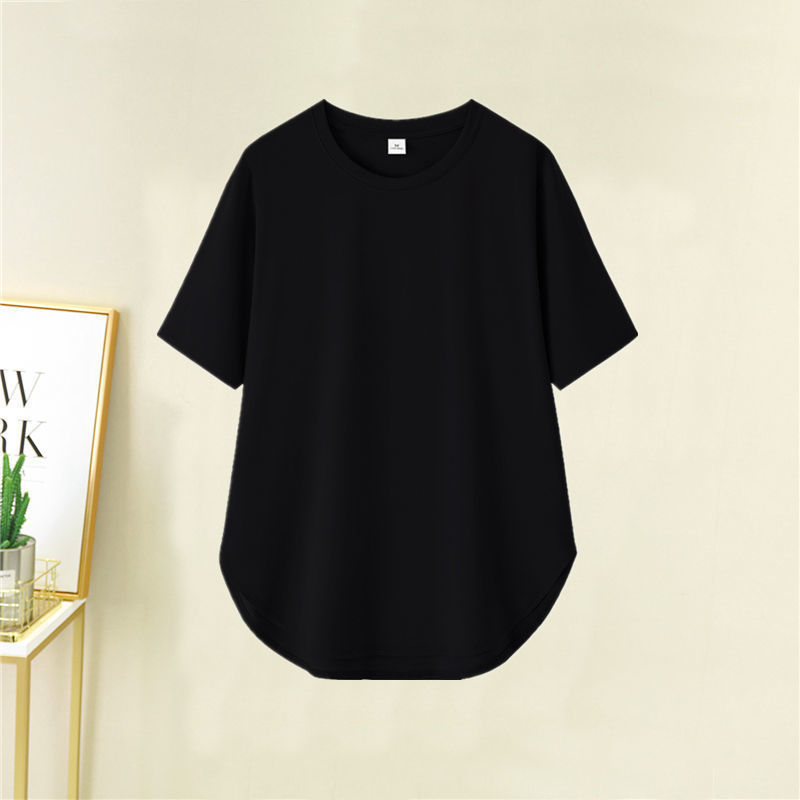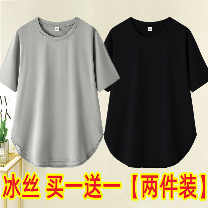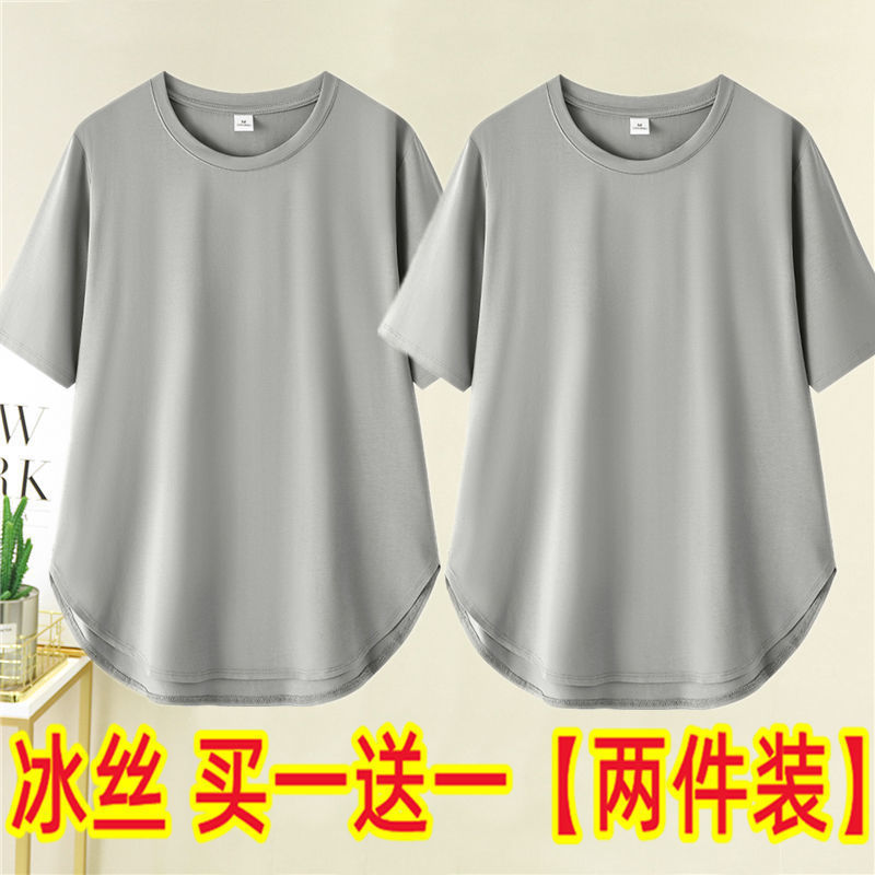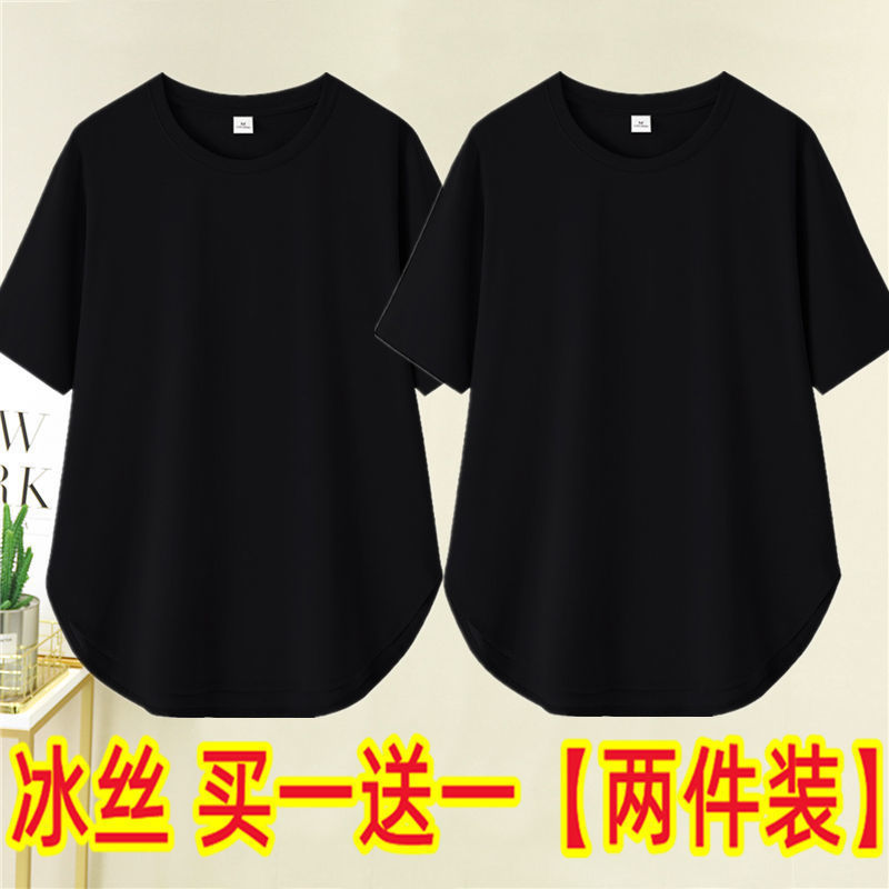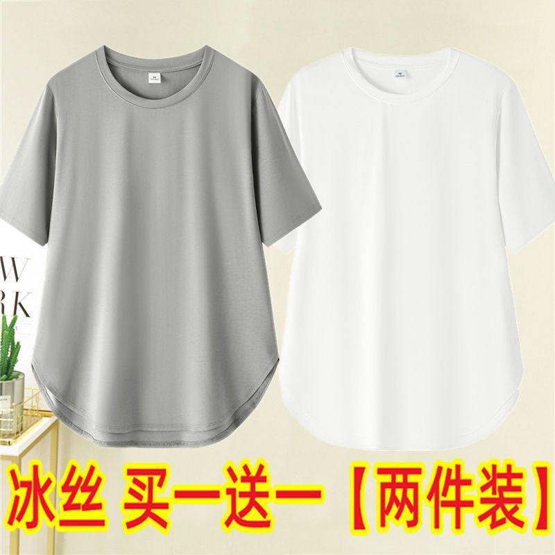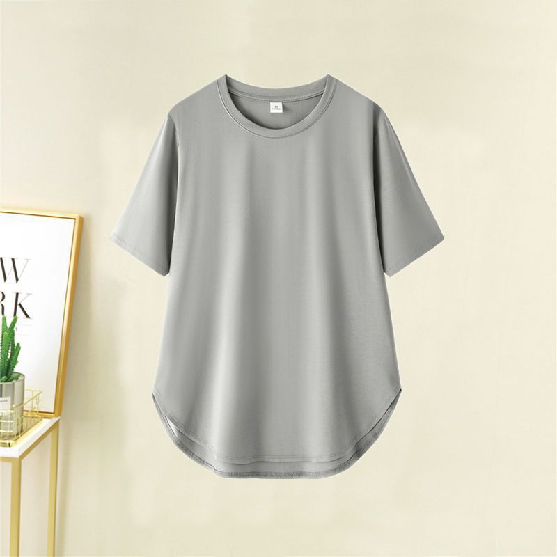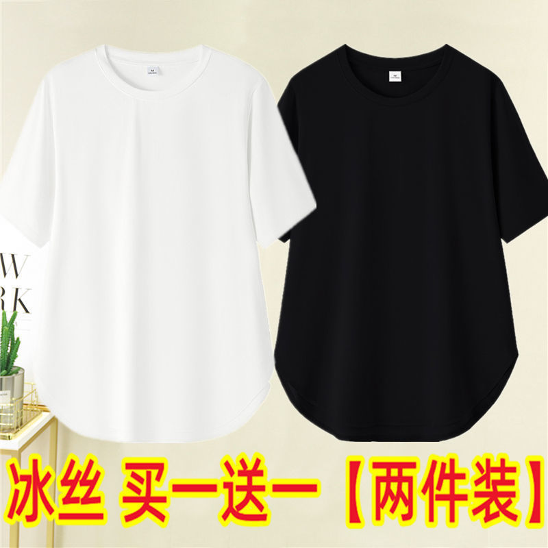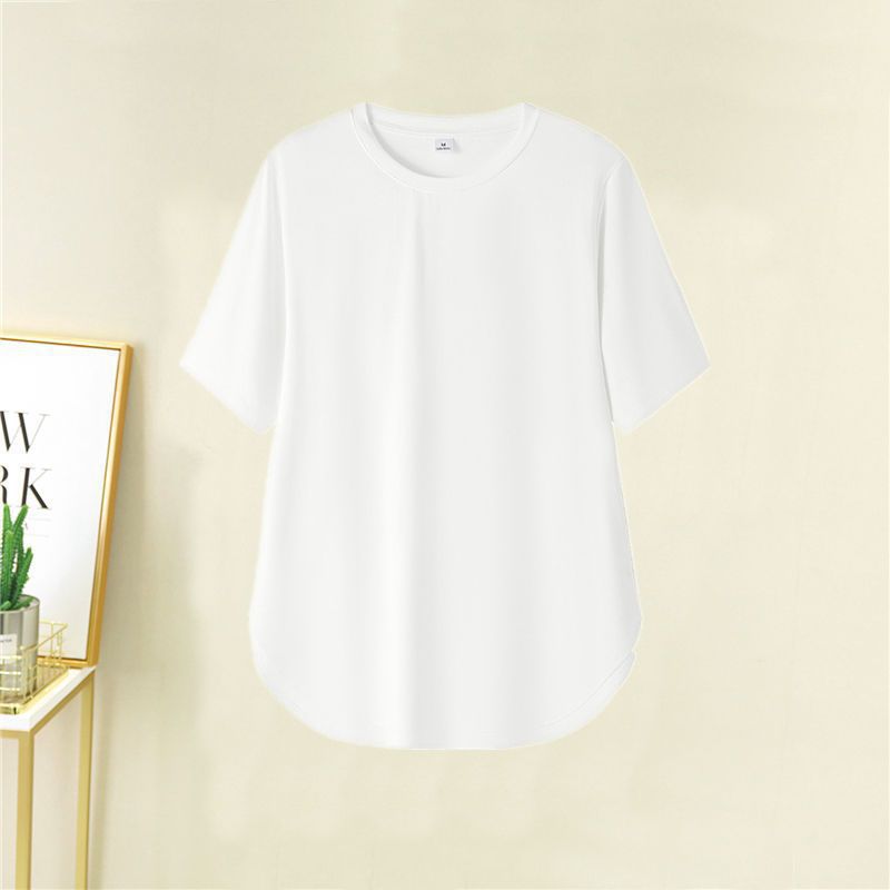 싱글/투피스 아이스 실크 반팔 티셔츠 여자 여름 라운드 넥 올매치베이스 셔츠 여자 아크 하단 티셔츠 탑