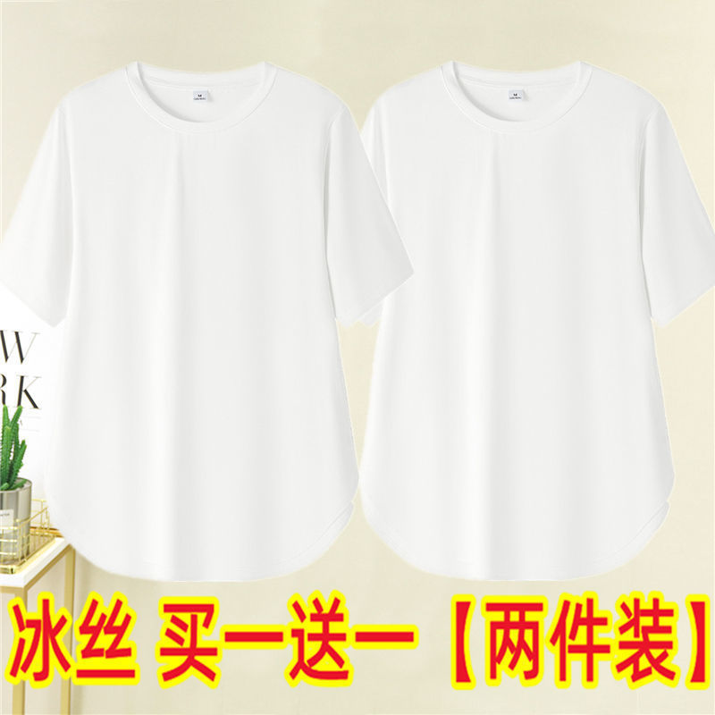 싱글/투피스 아이스 실크 반팔 티셔츠 여자 여름 라운드 넥 올매치베이스 셔츠 여자 아크 하단 티셔츠 탑스토어 가기
