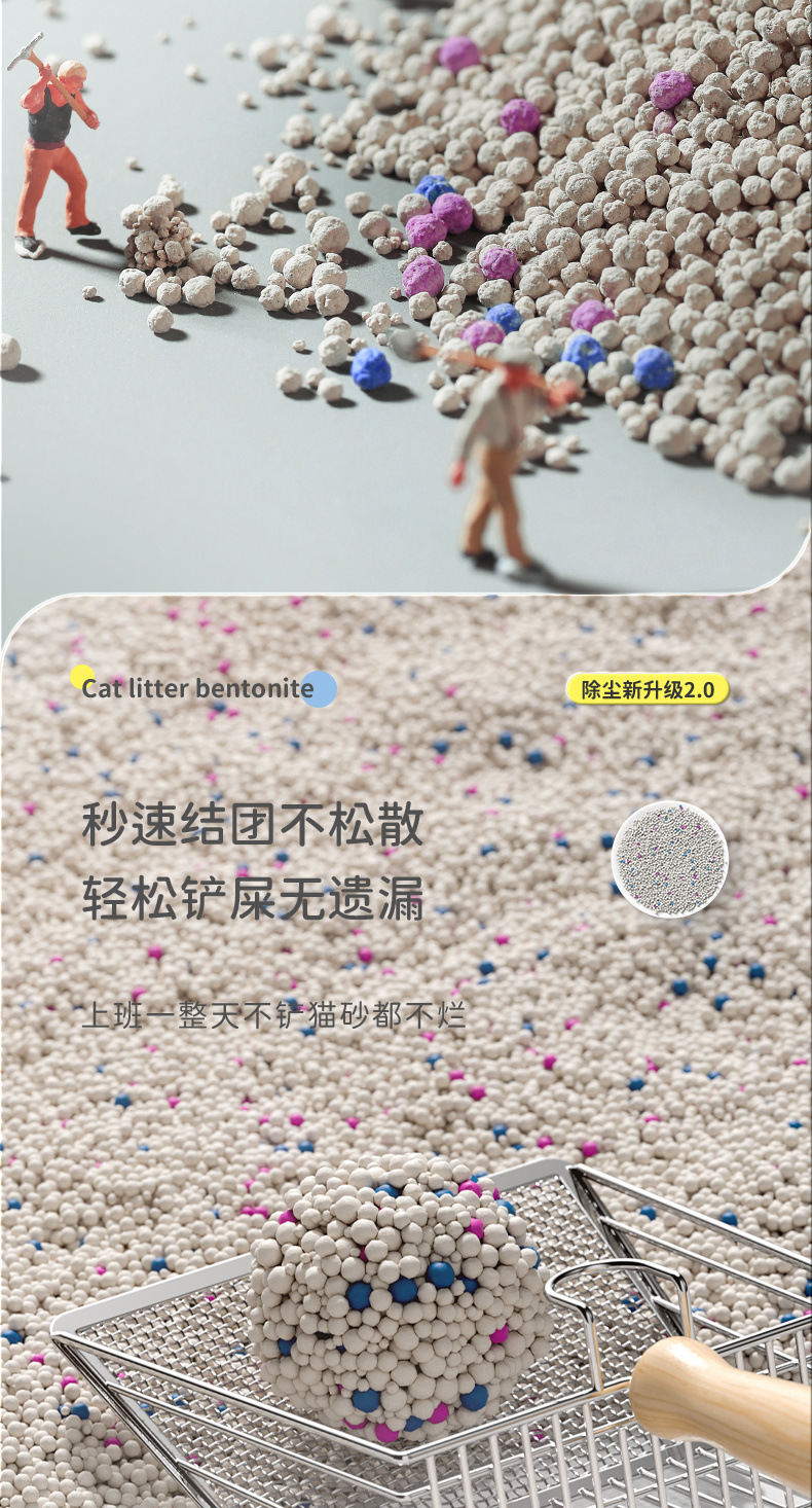 벤토나이트 고양이 쓰레기 탈취제 훈증 탈취제 고양이 화장실 새끼 고양이 사용 가능 인스턴트 초 붙지 않는 바닥 공장 공급스토어 가기
