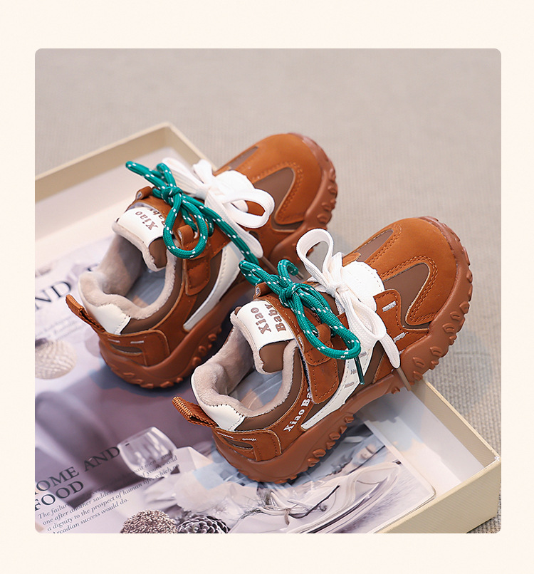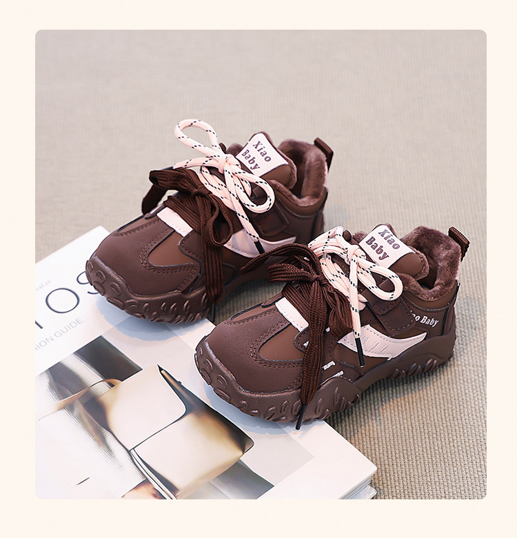 어린이 2 면 운동화 따뜻한 중대형 어린이 앞 레이스 업 2024 겨울 새 여자 러닝화 소프트 솔화스토어 가기