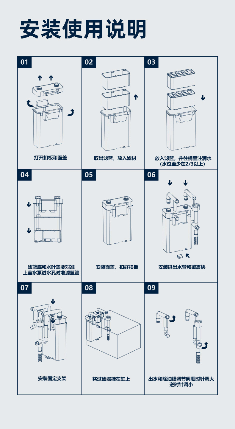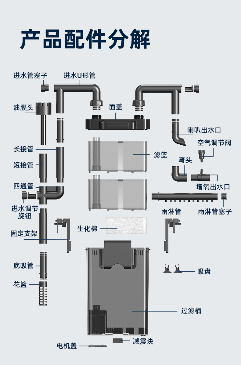 오래된 어부 어항 필터 작은 무음 오일 제거 막 벽걸이 필터 정수 사이클 3 대 1 필터 버킷