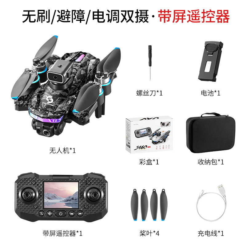 | 具体功能:带屏遥控器,无刷电机,电调摄像头, 避障功能,光流定位,定位功能,双摄像头带电动调节角度模式,机身带LED夜航灯,灯光自由变化,遥控器长按可关闭机身七彩灯光,提供多国说明书和详情图视频,带视频教程,可联系客服索取图片上架 |