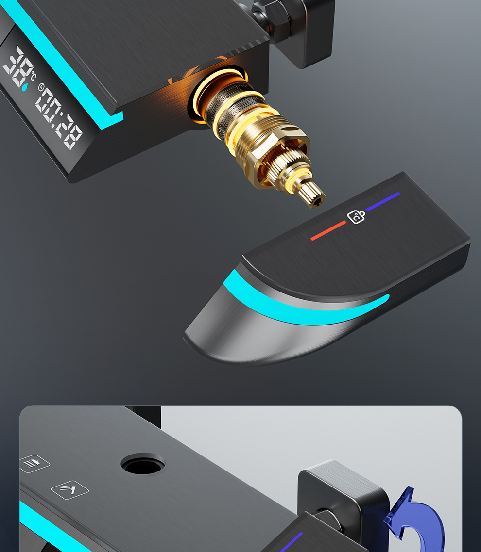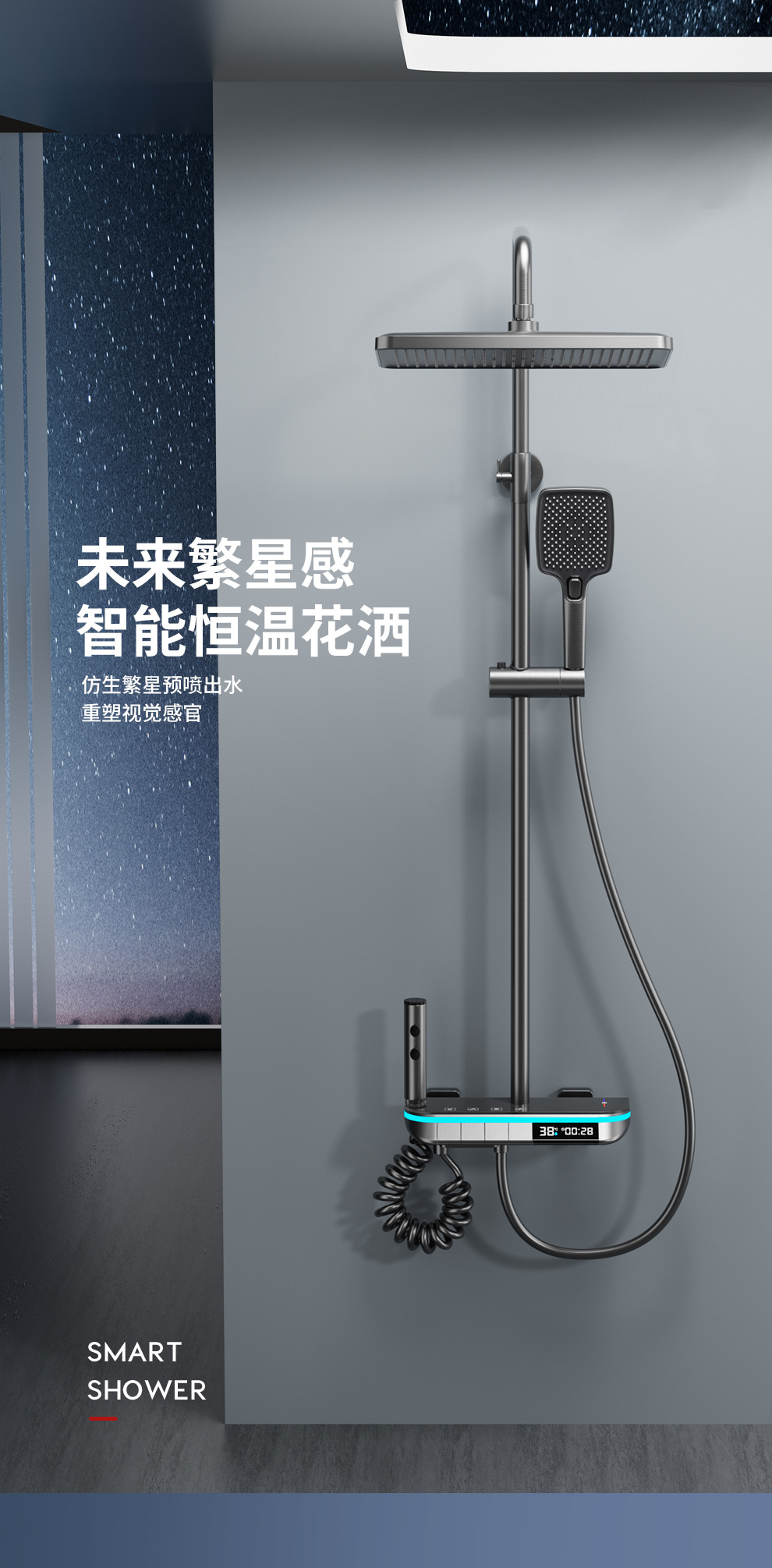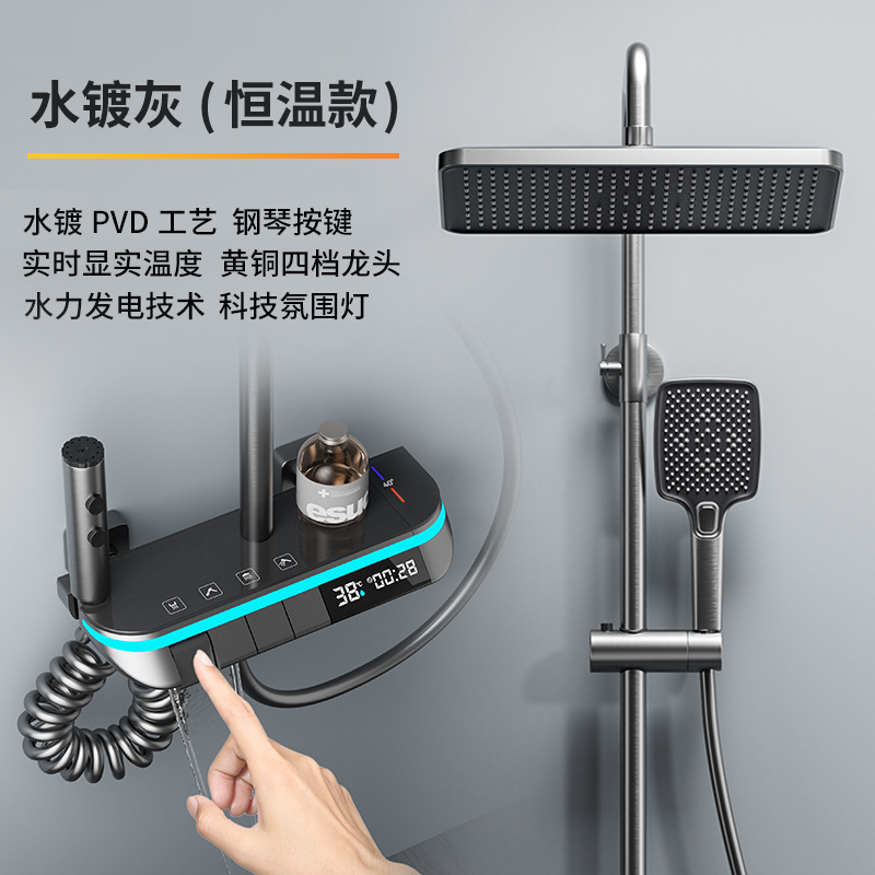 새로운 총 화이트 일정한 온도 샤워 세트 샤워 가구 모든 구리 피아노 키 디지털 디스플레이 비 압력 샤워
