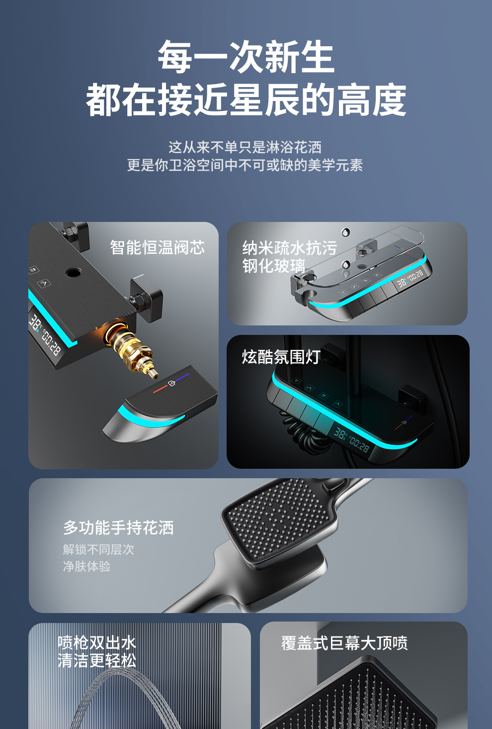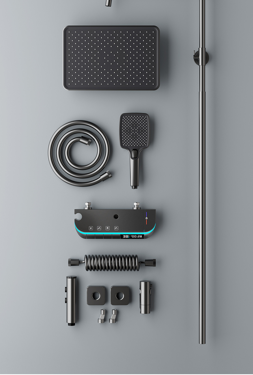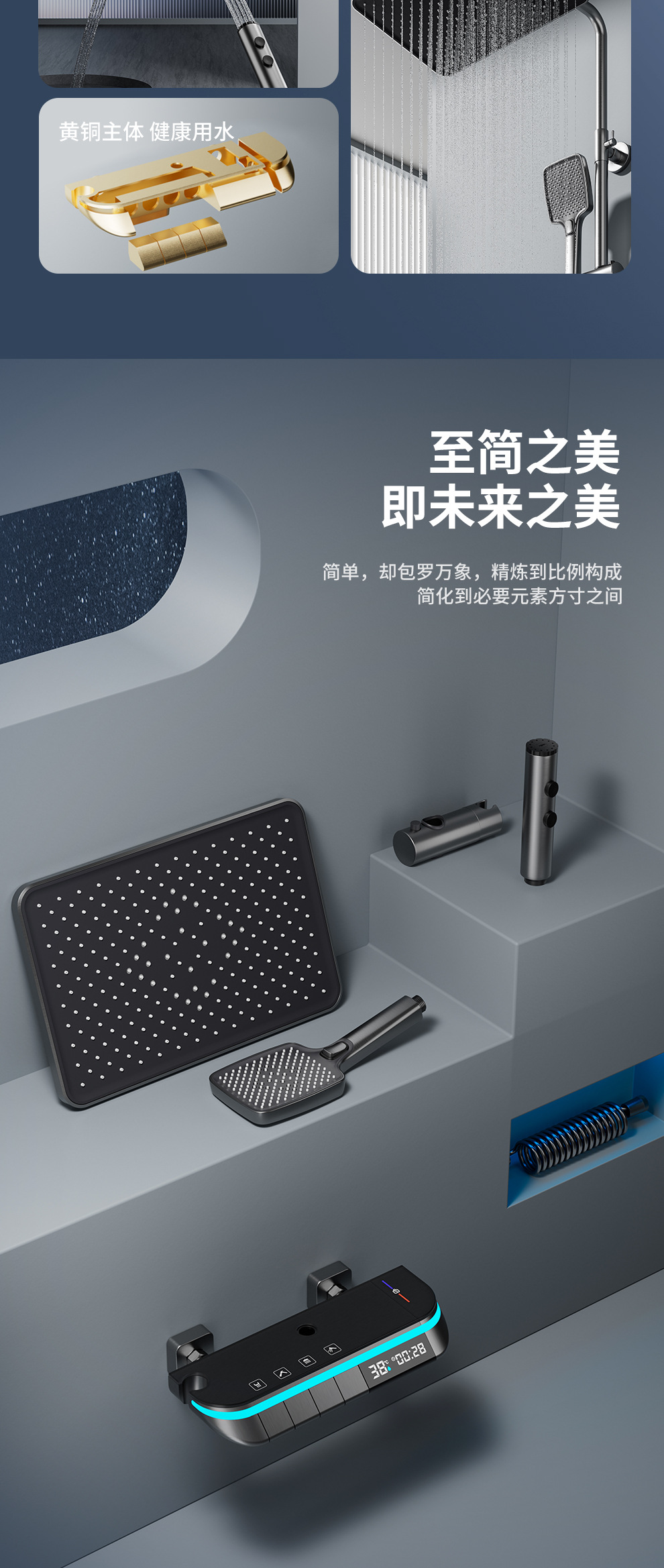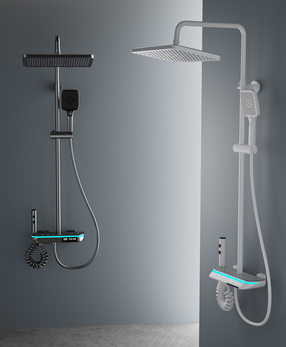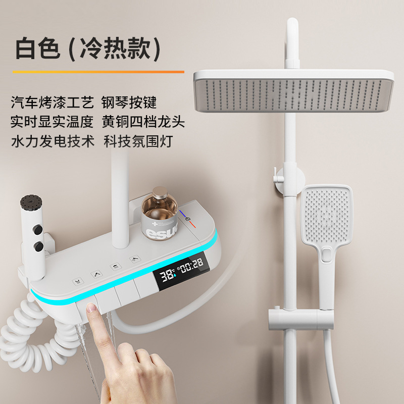 새로운 총 화이트 일정한 온도 샤워 세트 샤워 가구 모든 구리 피아노 키 디지털 디스플레이 비 압력 샤워스토어 가기