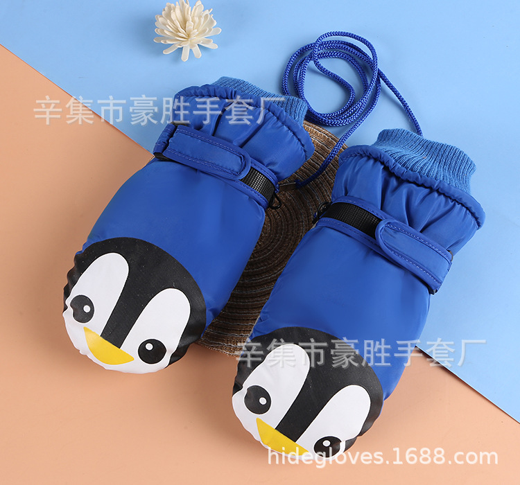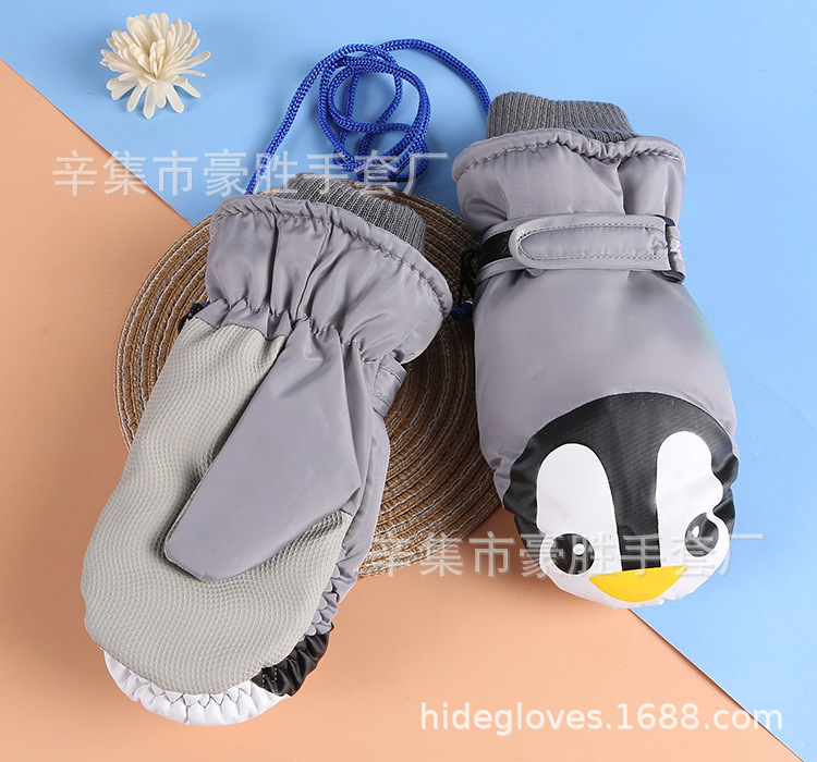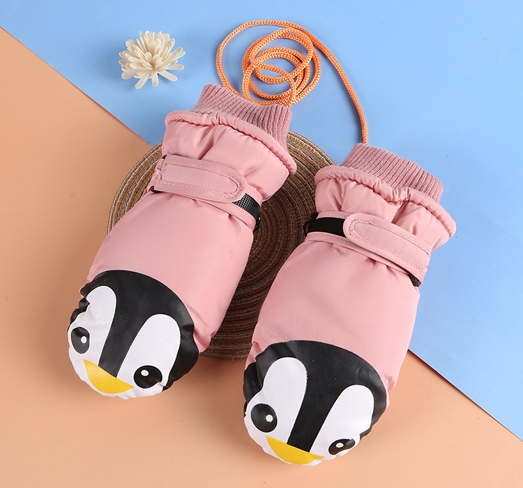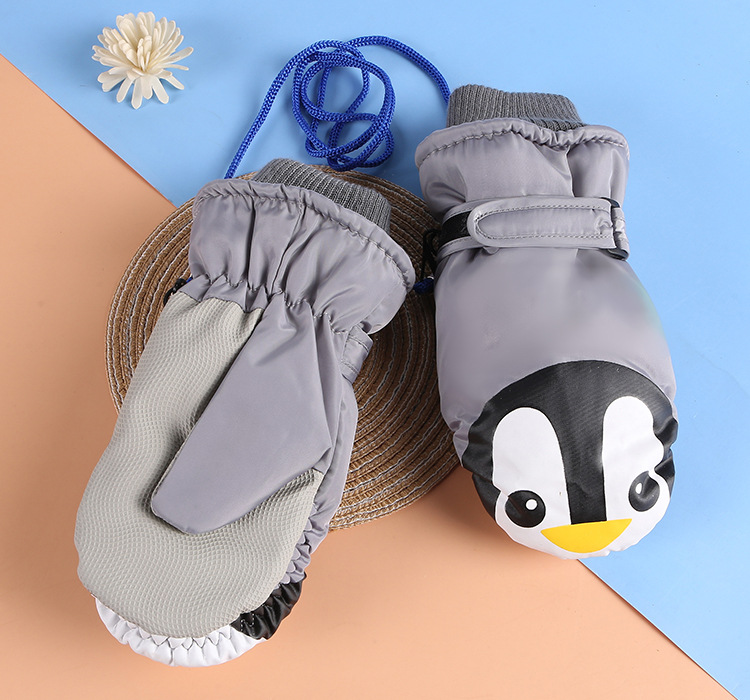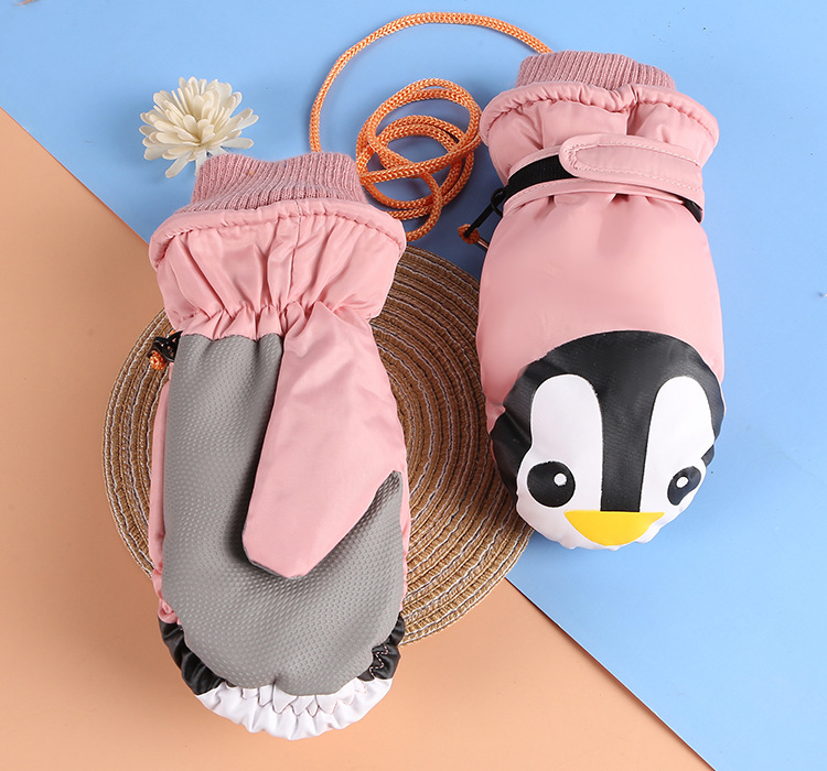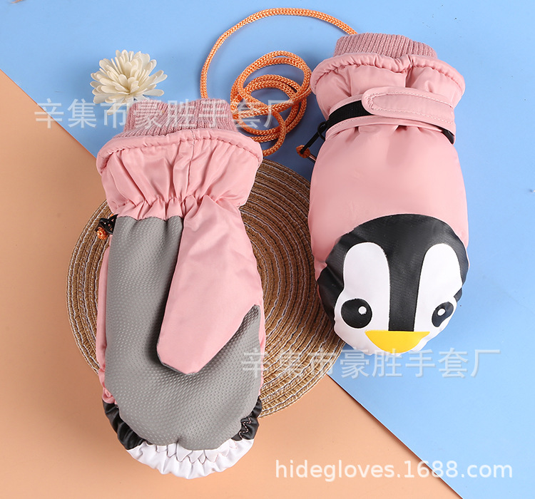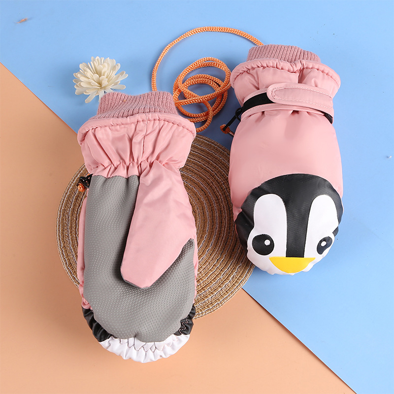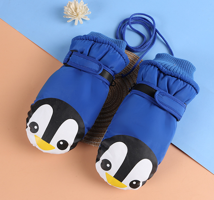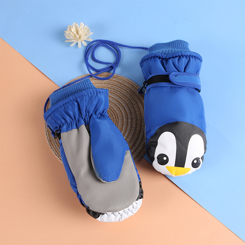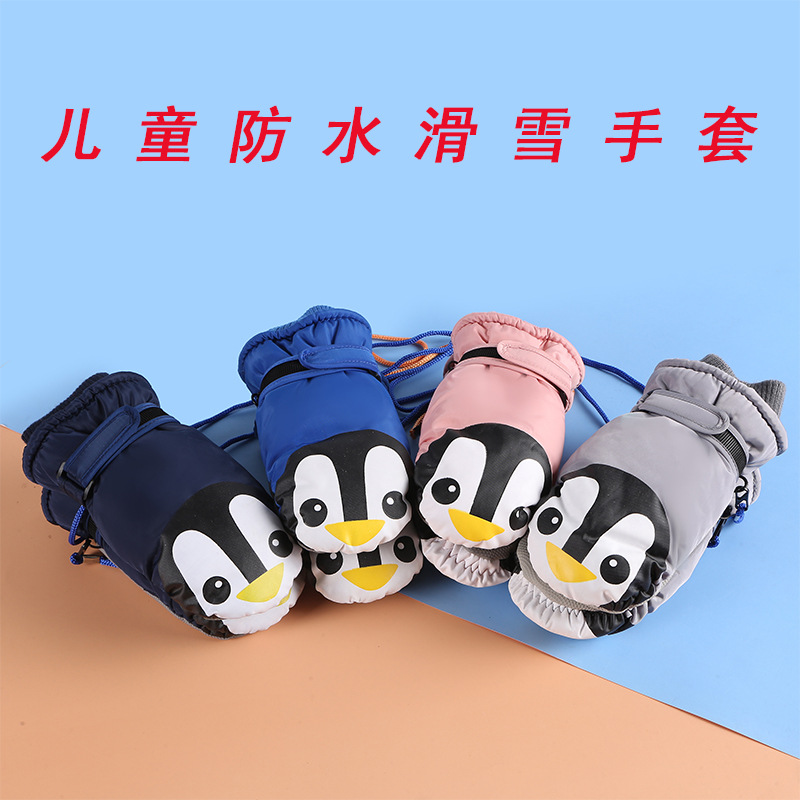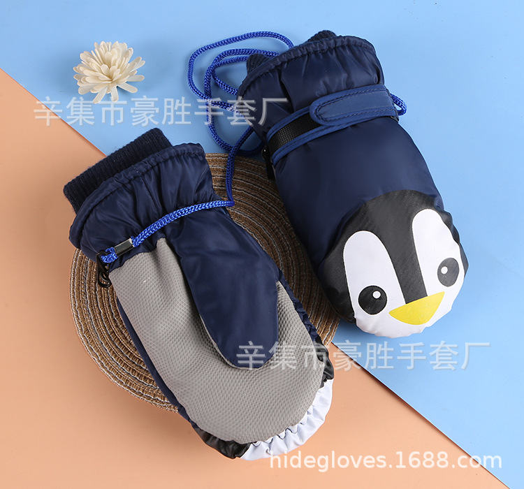 겨울 어린이 스키 장갑 따뜻한 두꺼운 기모 소년 소녀 어린이 놀이 눈 방수 방풍 면화 아기 펭귄