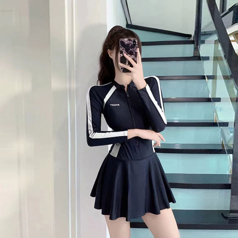 수영복 여성용 2024 년 통통한 소녀를위한 새로운 긴 소매 수영복 육류로 덮인 플러스 사이즈 여성 스포츠 수영복