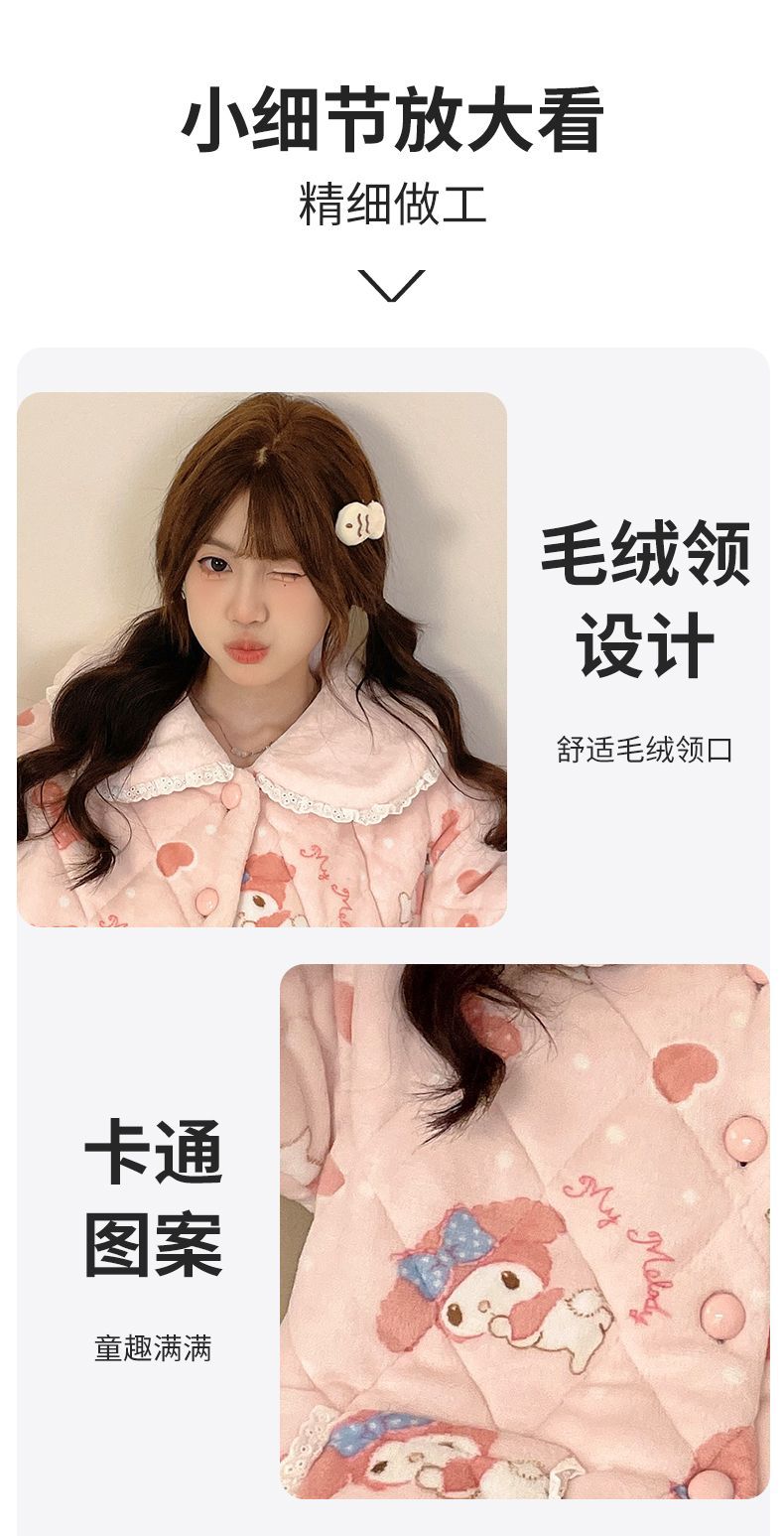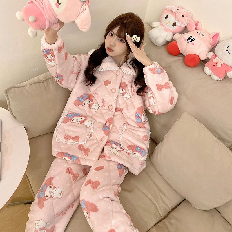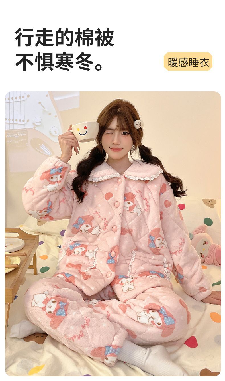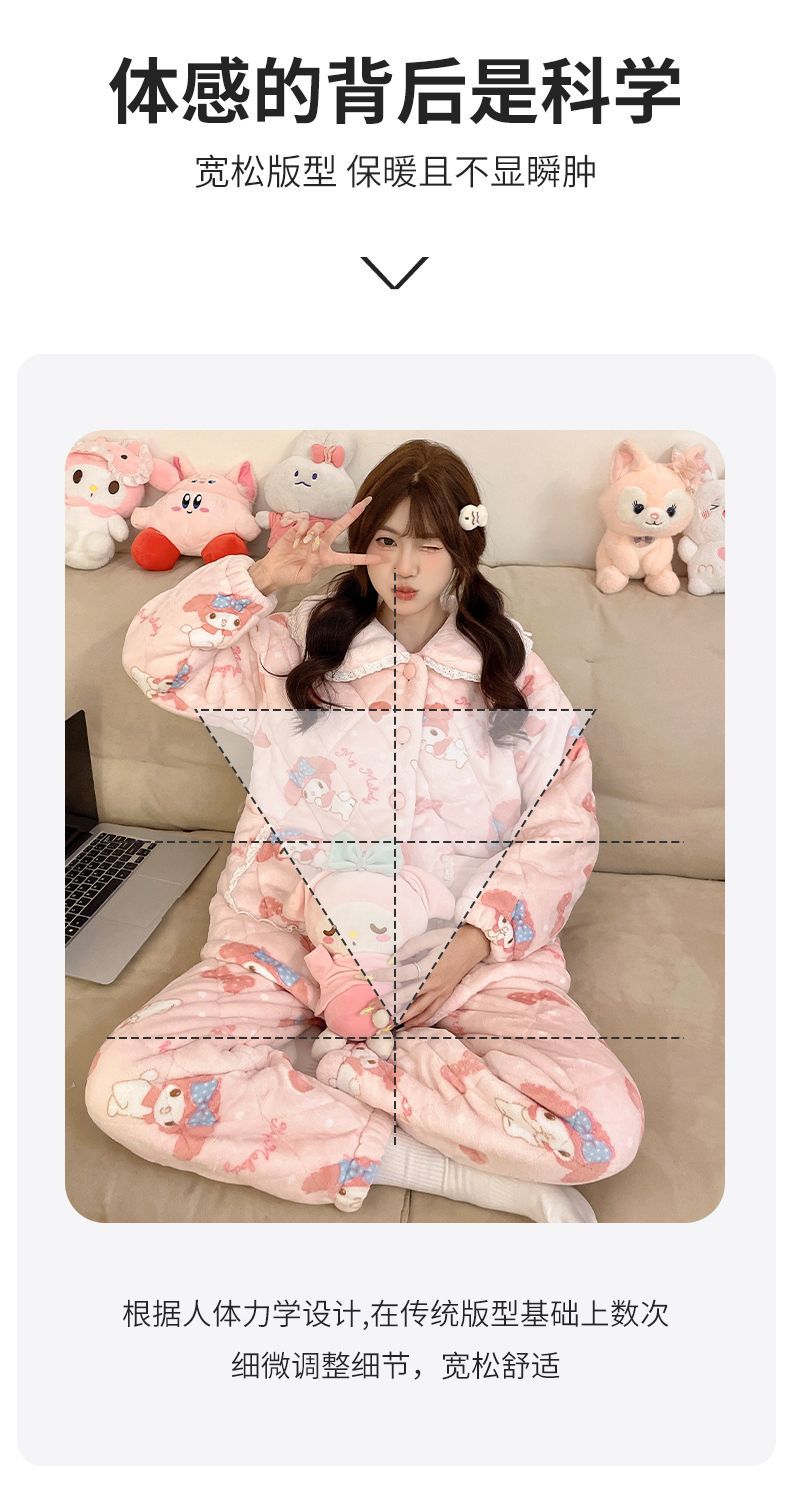 겨울 멜로디 어머니와 딸 3 층 퀼트 파자마 패딩 따뜻한 플란넬 어린이 성인 홈 의류 투피스 세트