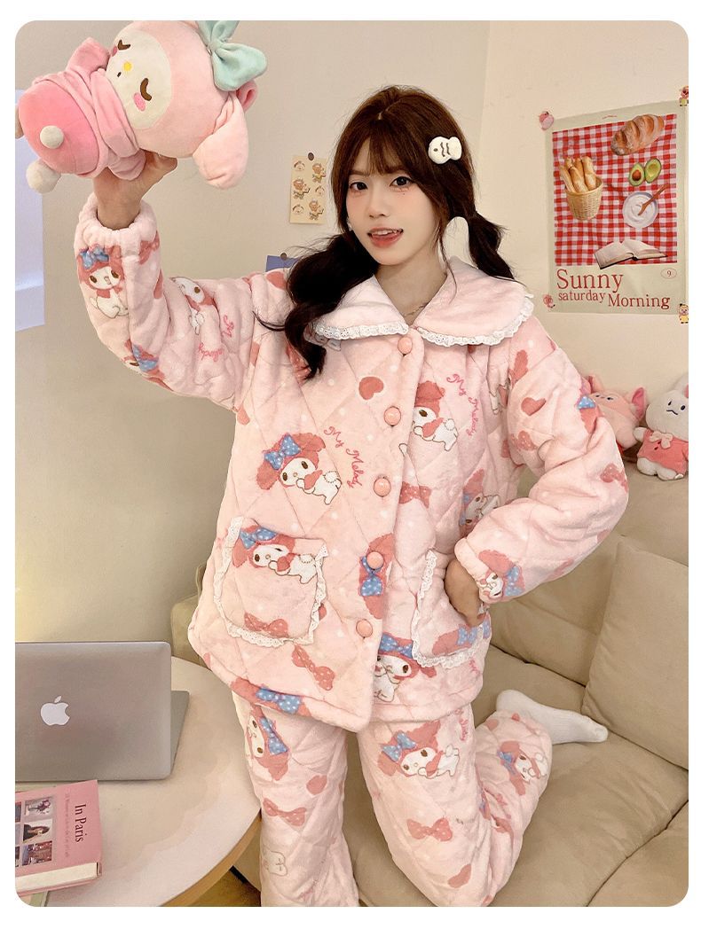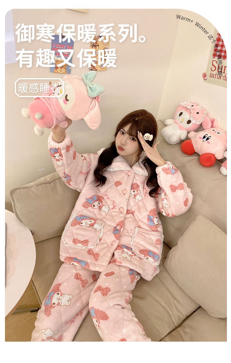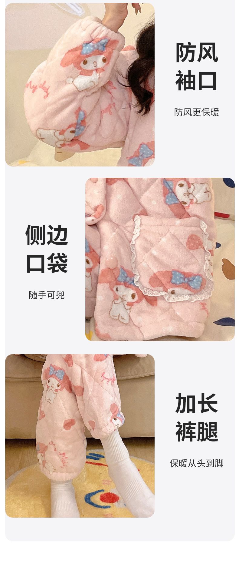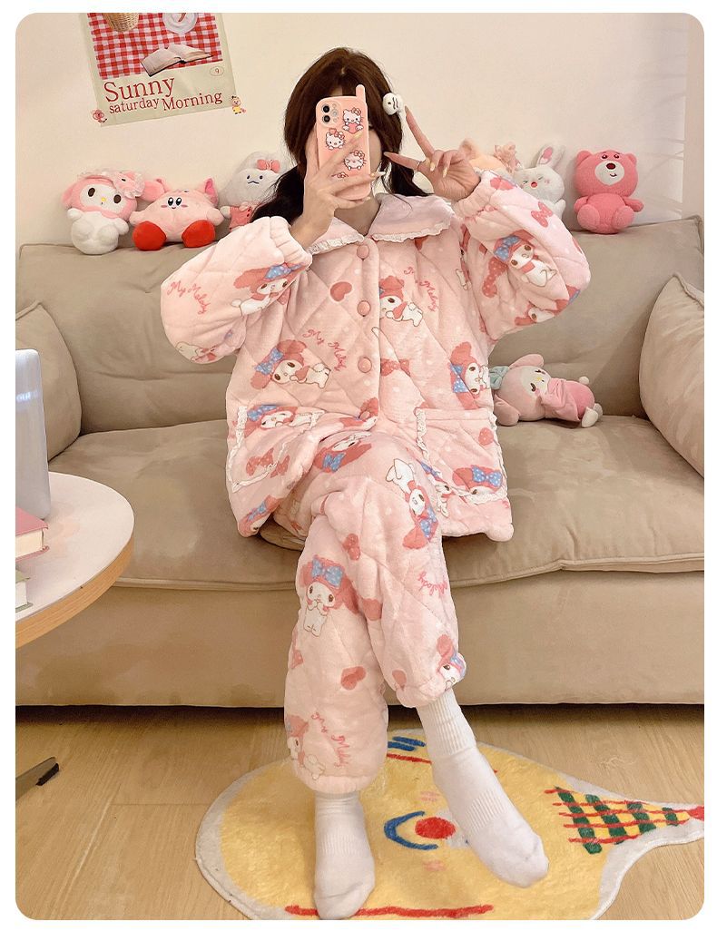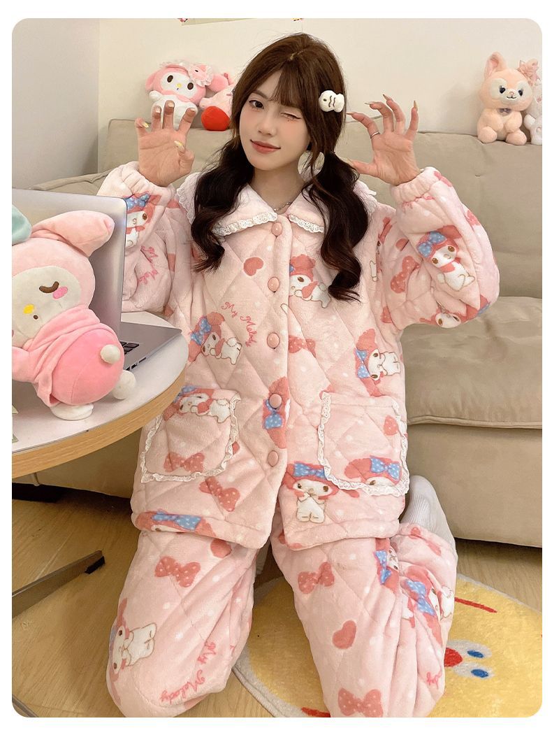 겨울 멜로디 어머니와 딸 3 층 퀼트 파자마 패딩 따뜻한 플란넬 어린이 성인 홈 의류 투피스 세트