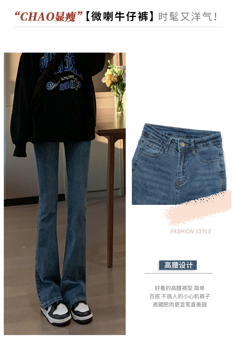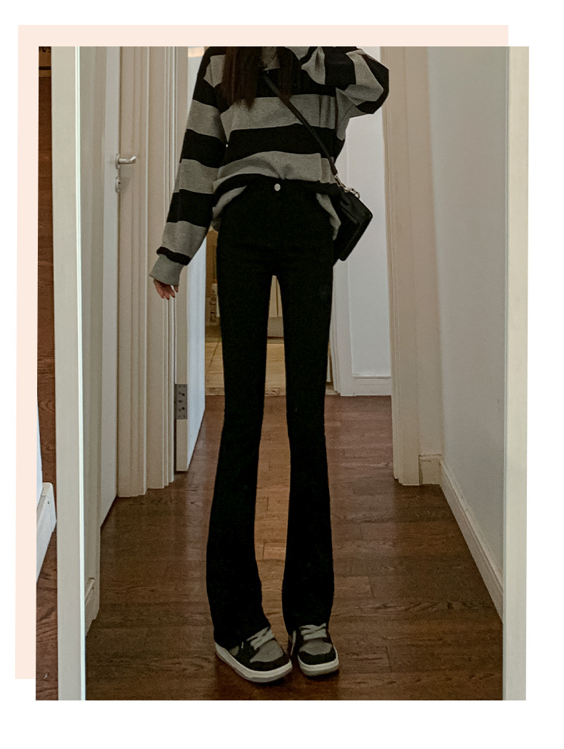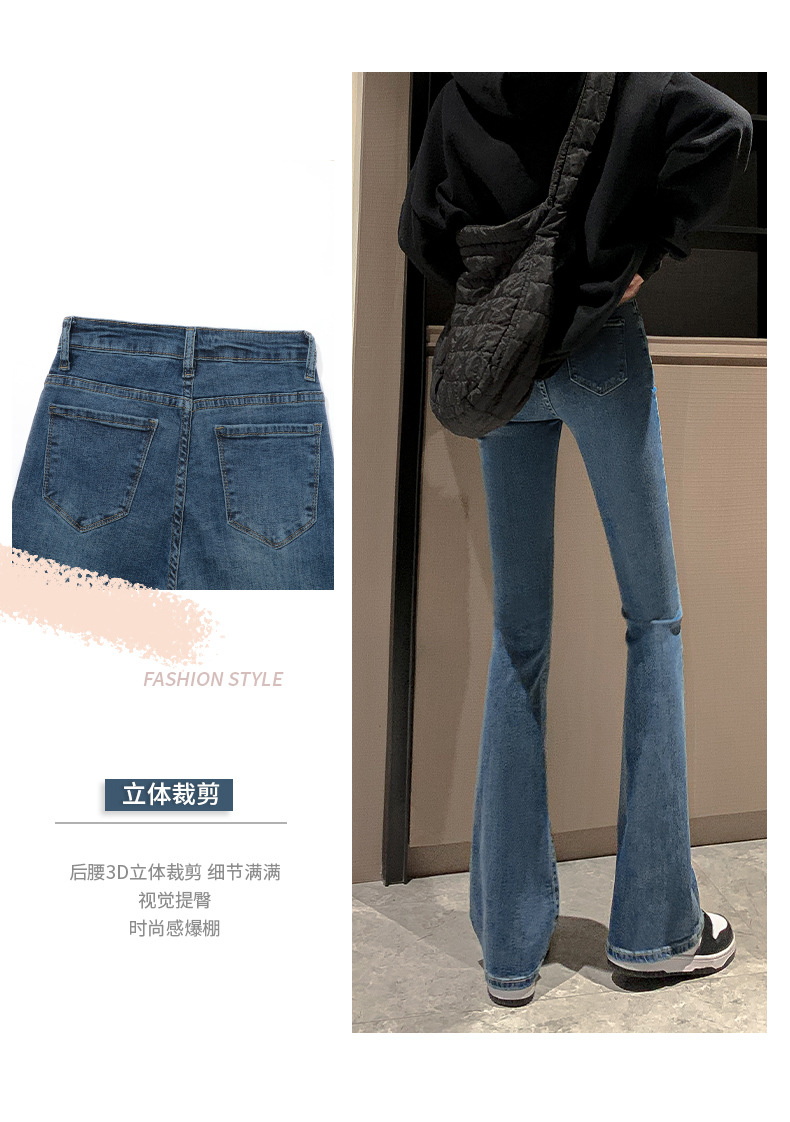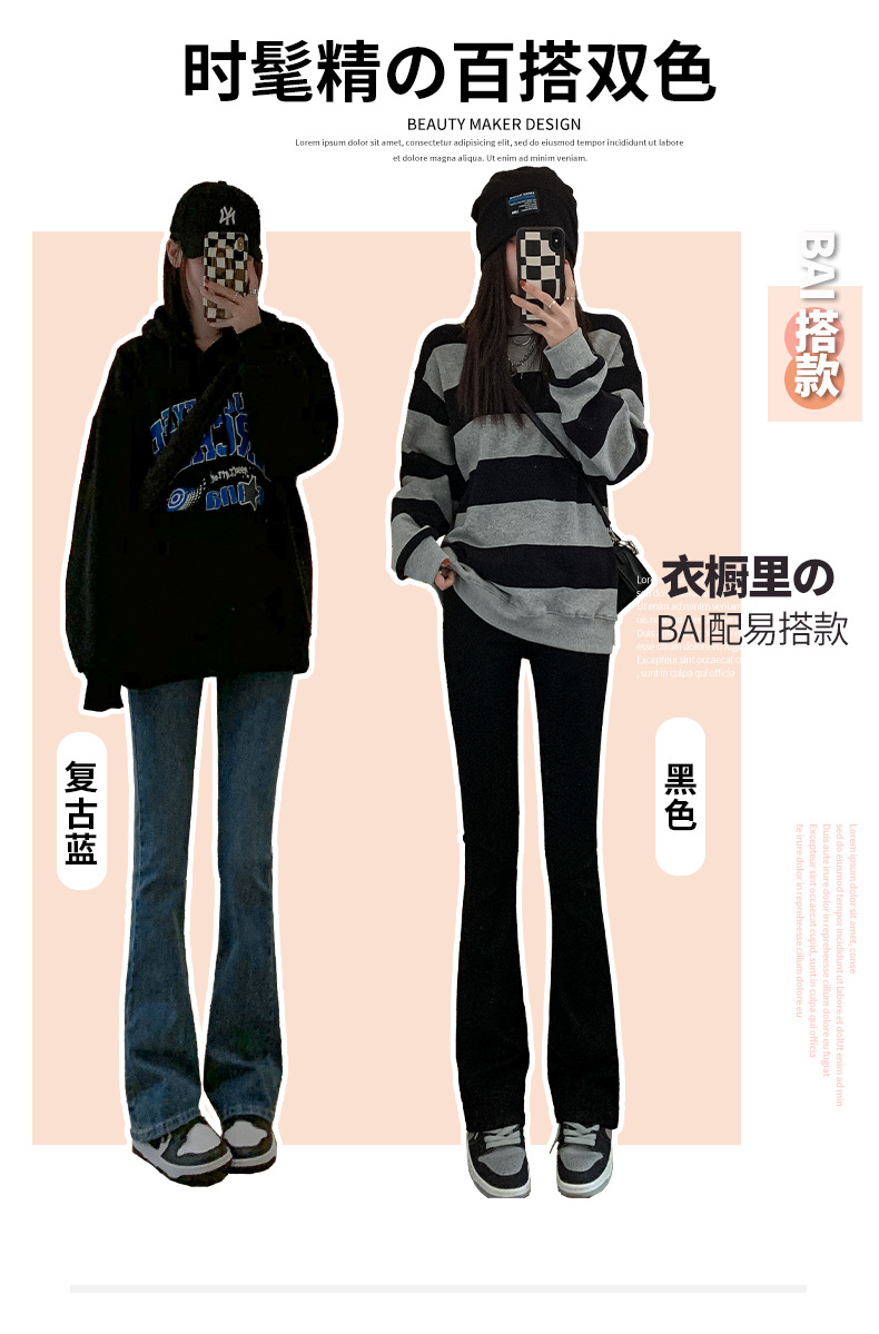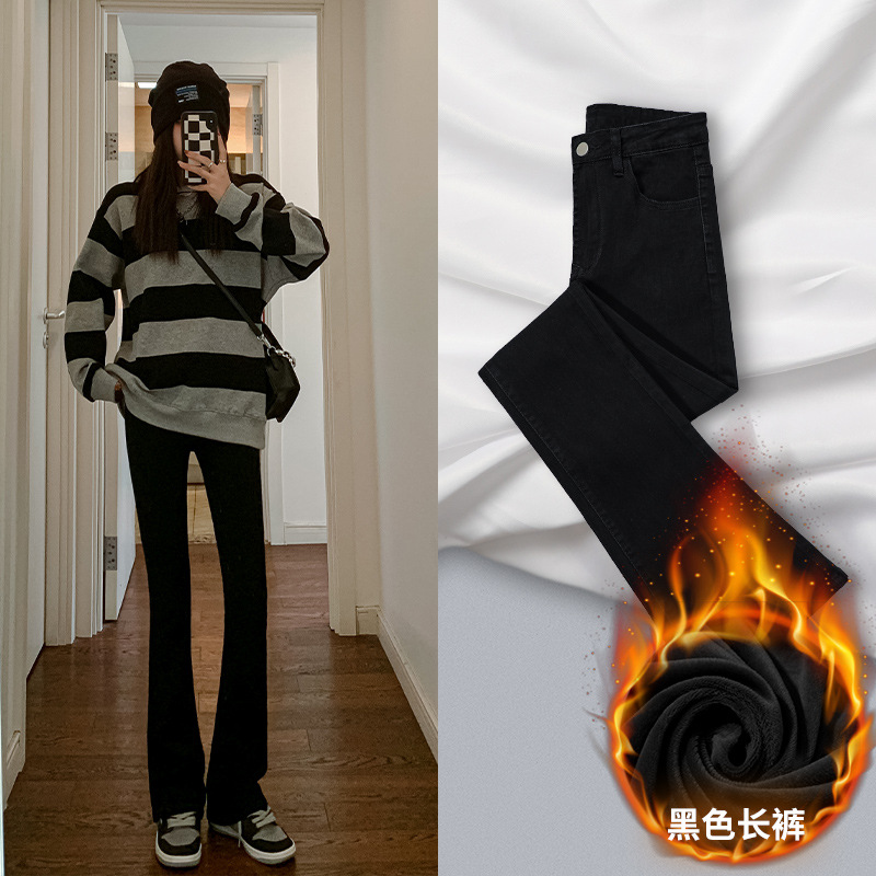 Micro-La Jeans 여성의 가을과 겨울 2024 새로운 높은 허리 슬리밍 레트로 어린이를위한 작은 기모 플라 바지스토어 가기