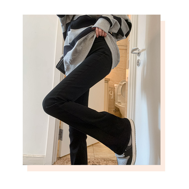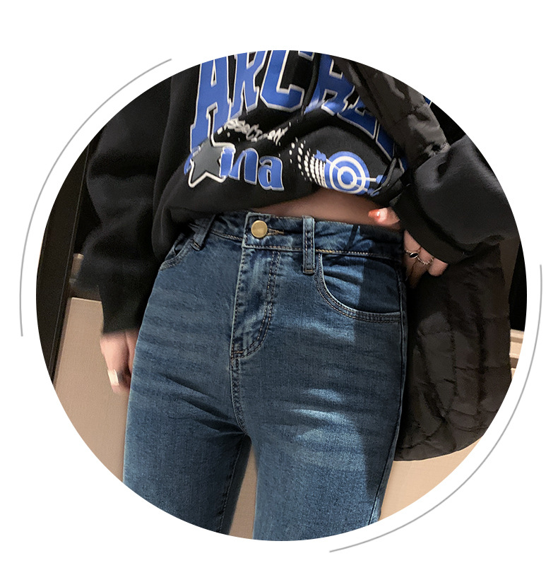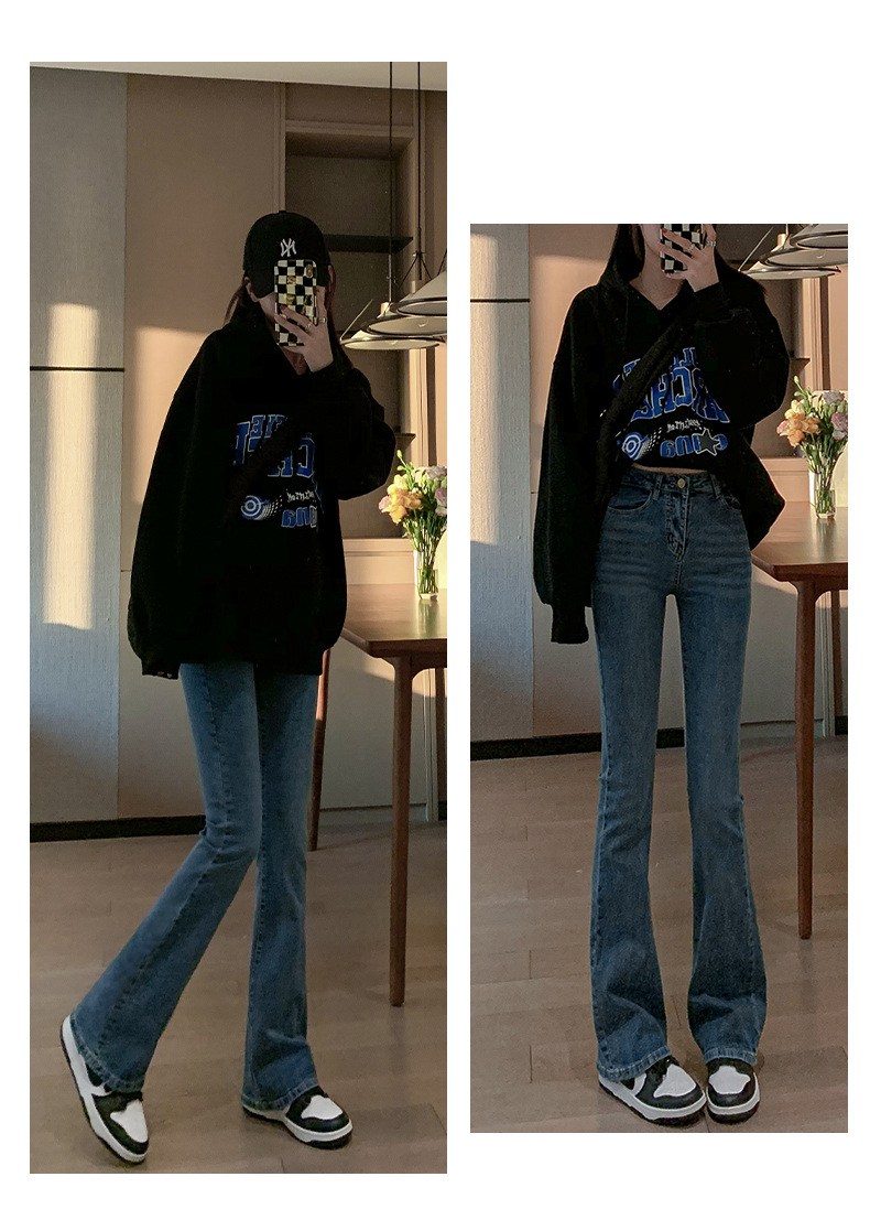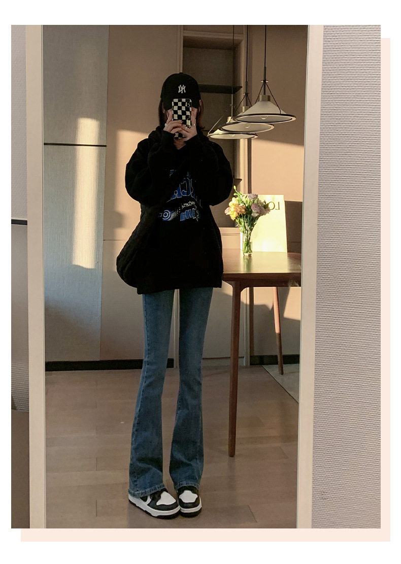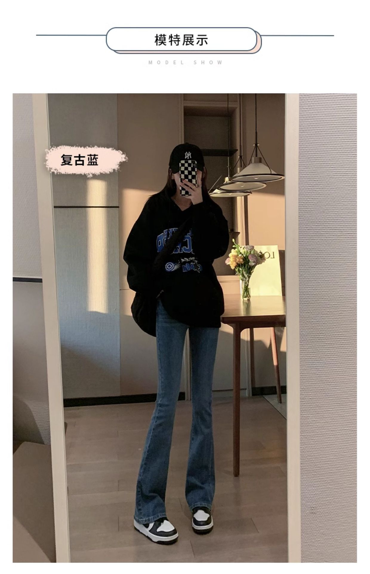 Micro-La Jeans 여성의 가을과 겨울 2024 새로운 높은 허리 슬리밍 레트로 어린이를위한 작은 기모 플라 바지스토어 가기