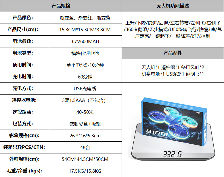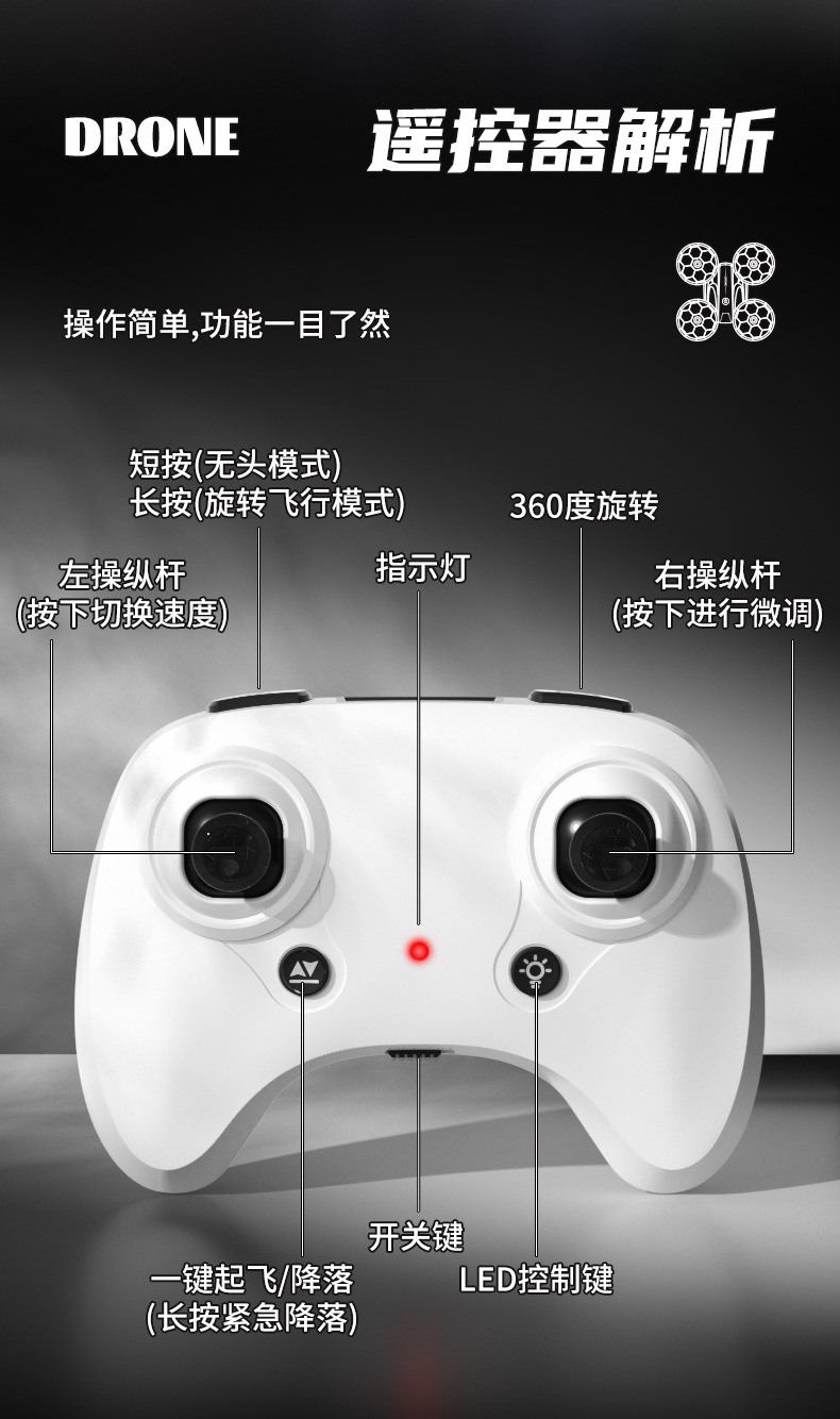 JJRC 새로운 다채로운 조명 2.4G 원격 제어 항공기 스턴트 회전 고정 높이 4축 보급형 항공기 장난감스토어 가기