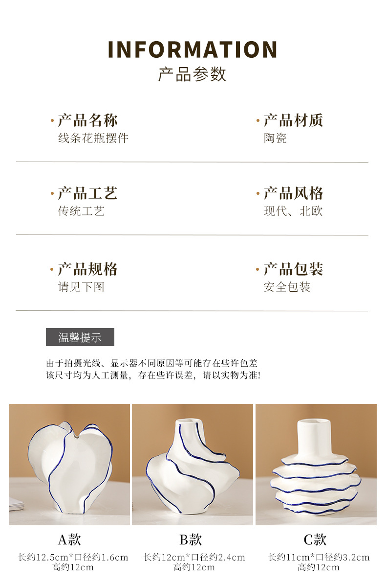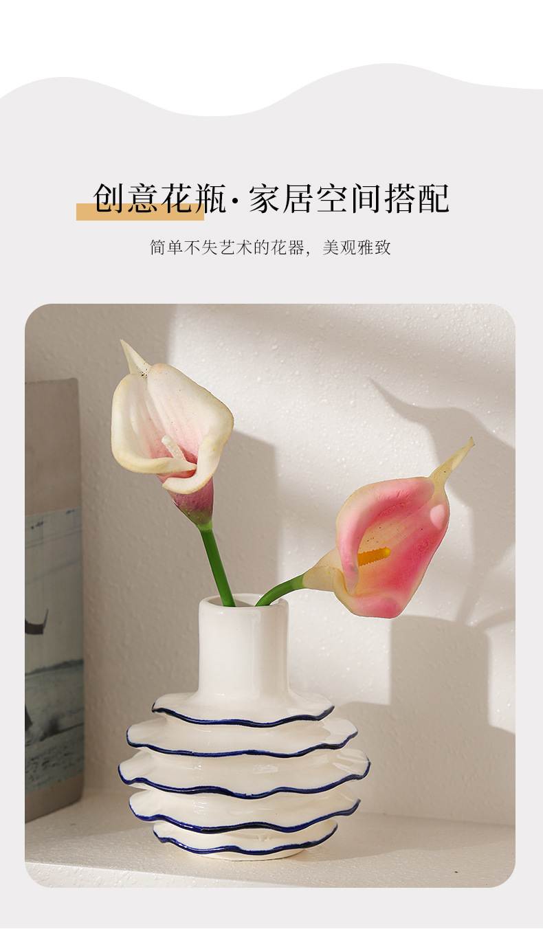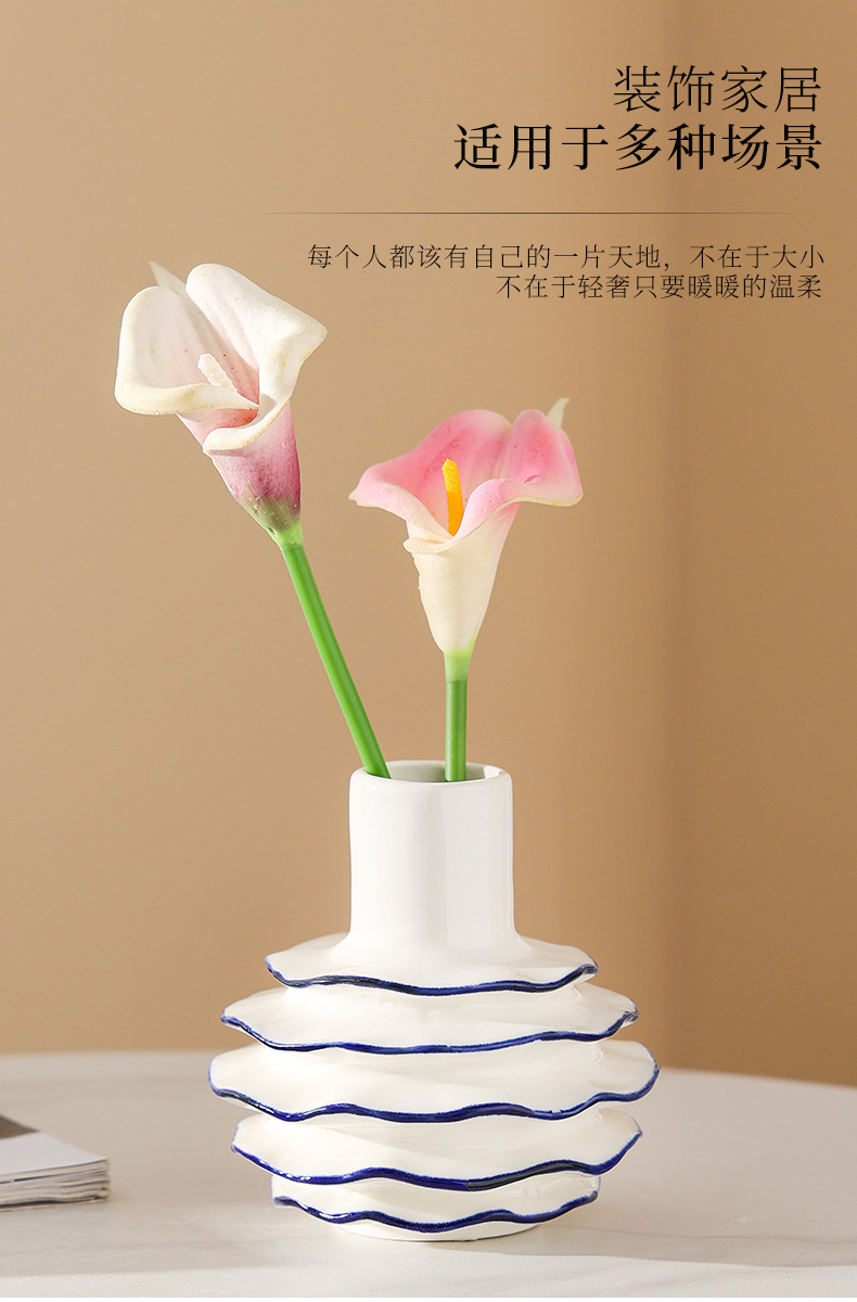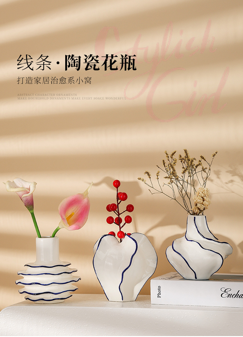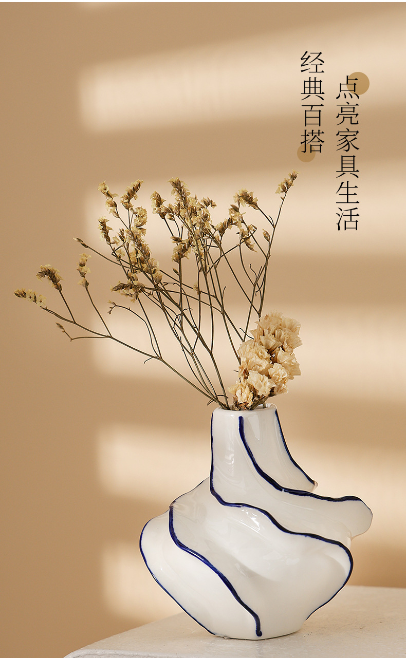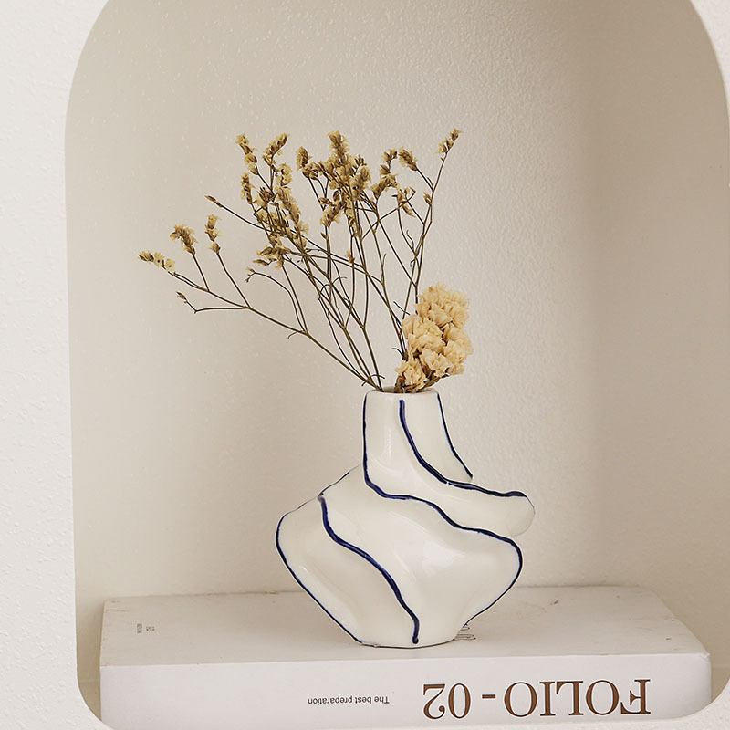 꽃병 세라믹 장식 말린 꽃 시뮬레이션 꽃병 홈 장식 거실 북유럽 줄무늬 창조적 인 꽃병 물
