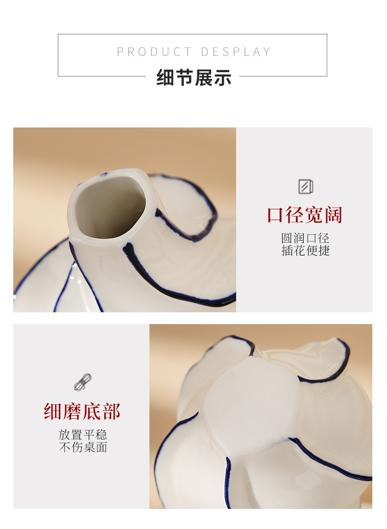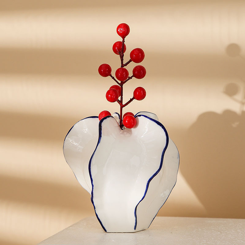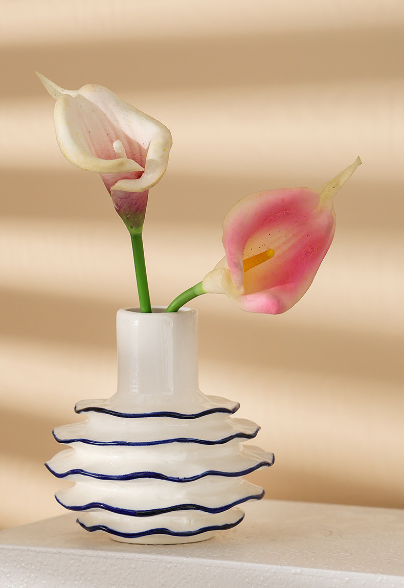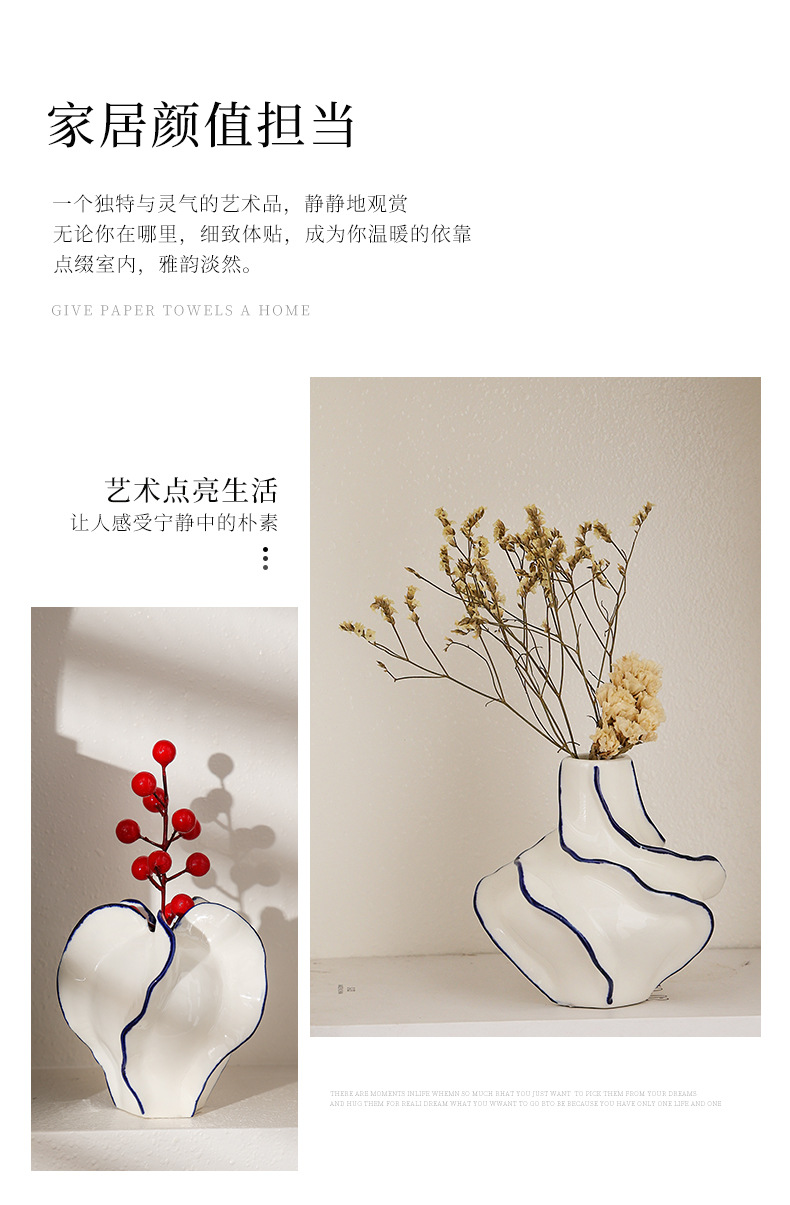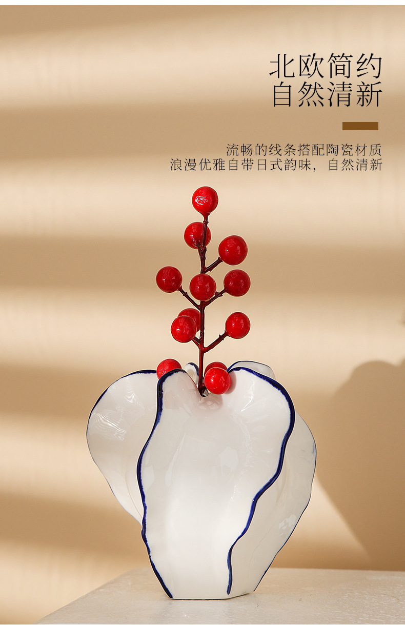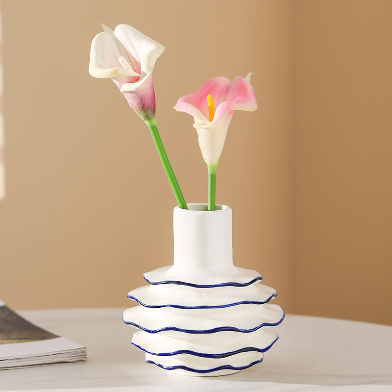꽃병 세라믹 장식 말린 꽃 시뮬레이션 꽃병 홈 장식 거실 북유럽 줄무늬 창조적 인 꽃병 물