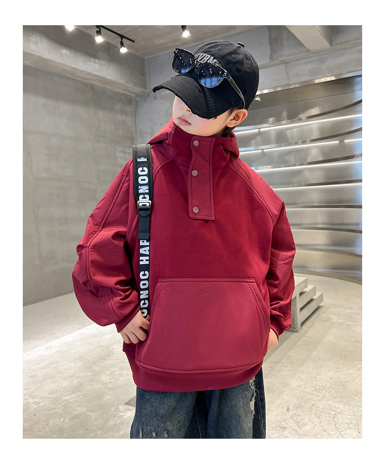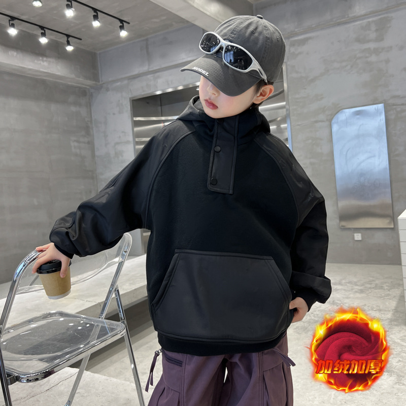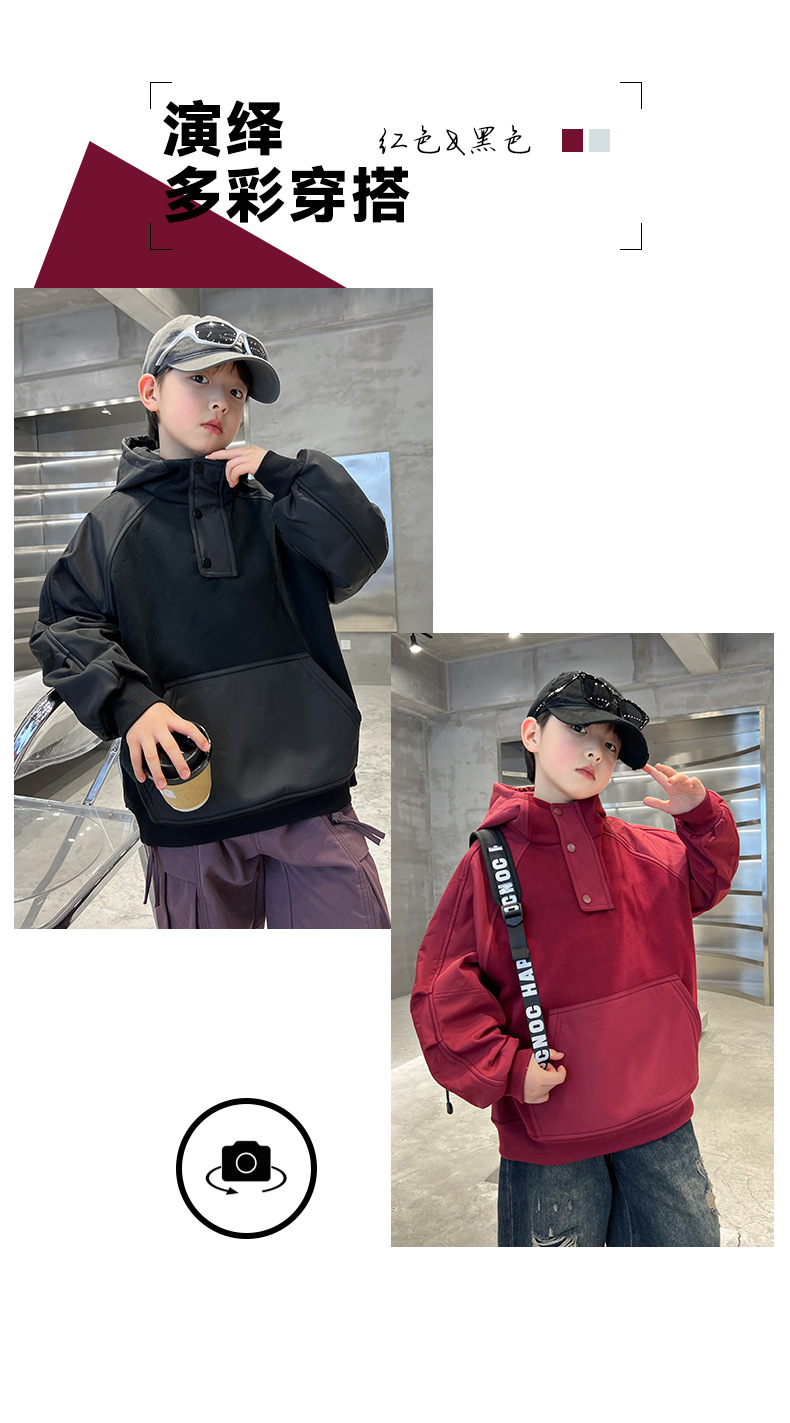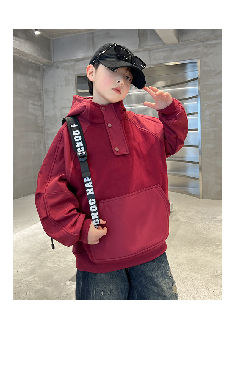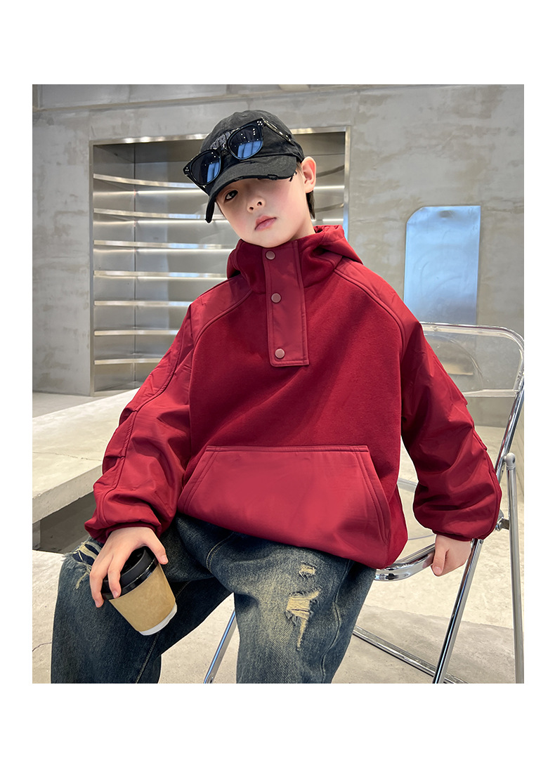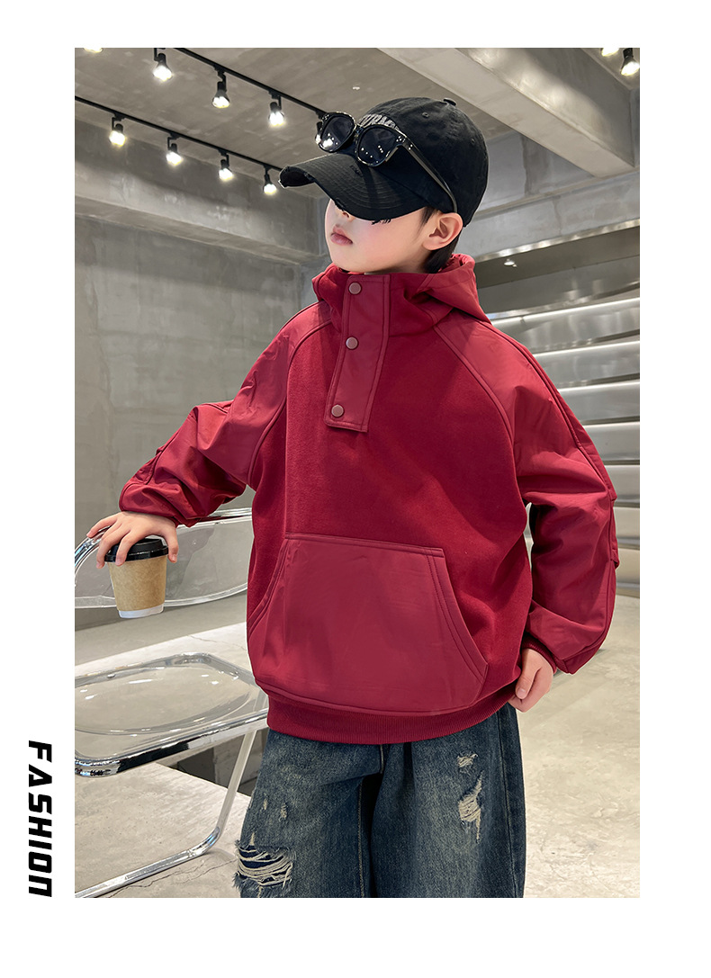 아동복 남아 겨울용 기모 레드 스웨트셔츠 2026 신상 중대형 아동 가을 겨울용 남아 두꺼운 상의 트렌디