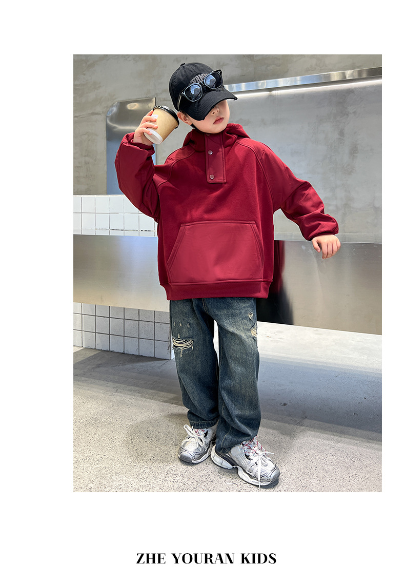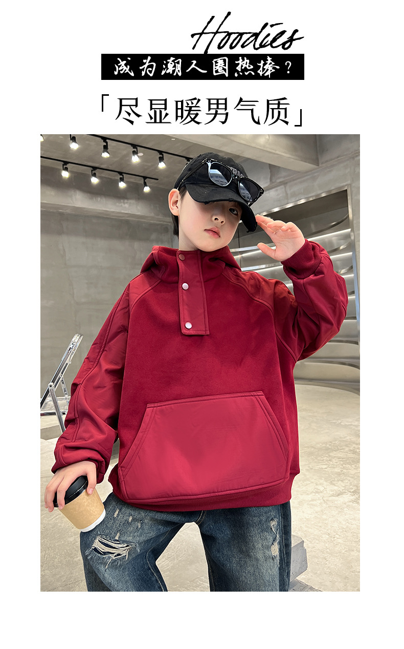 아동복 남아 겨울용 기모 레드 스웨트셔츠 2026 신상 중대형 아동 가을 겨울용 남아 두꺼운 상의 트렌디스토어 가기
