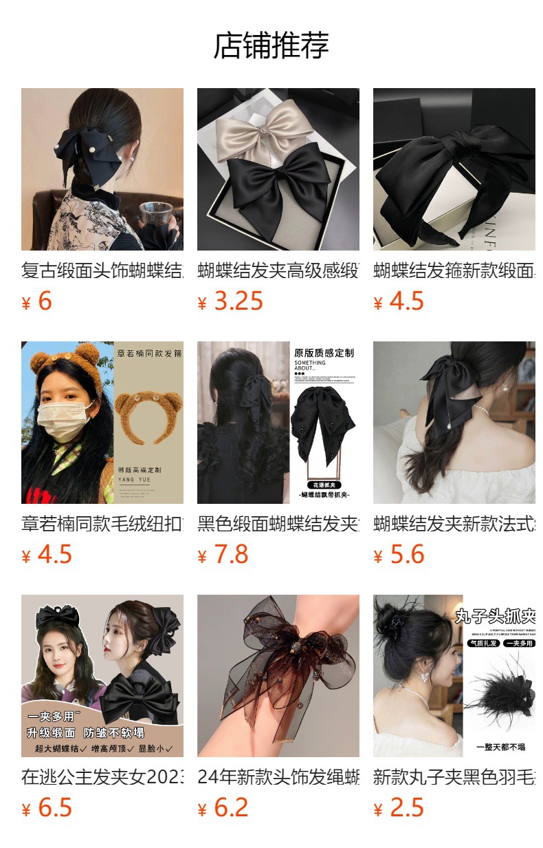 Rose Liu Yifei Huang Yimei의 하이 엔드 Satin Rhinestone 활 스프링 클립 헤어핀 헤드웨어 이야기스토어 가기