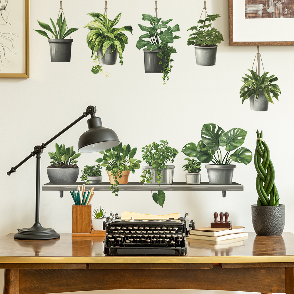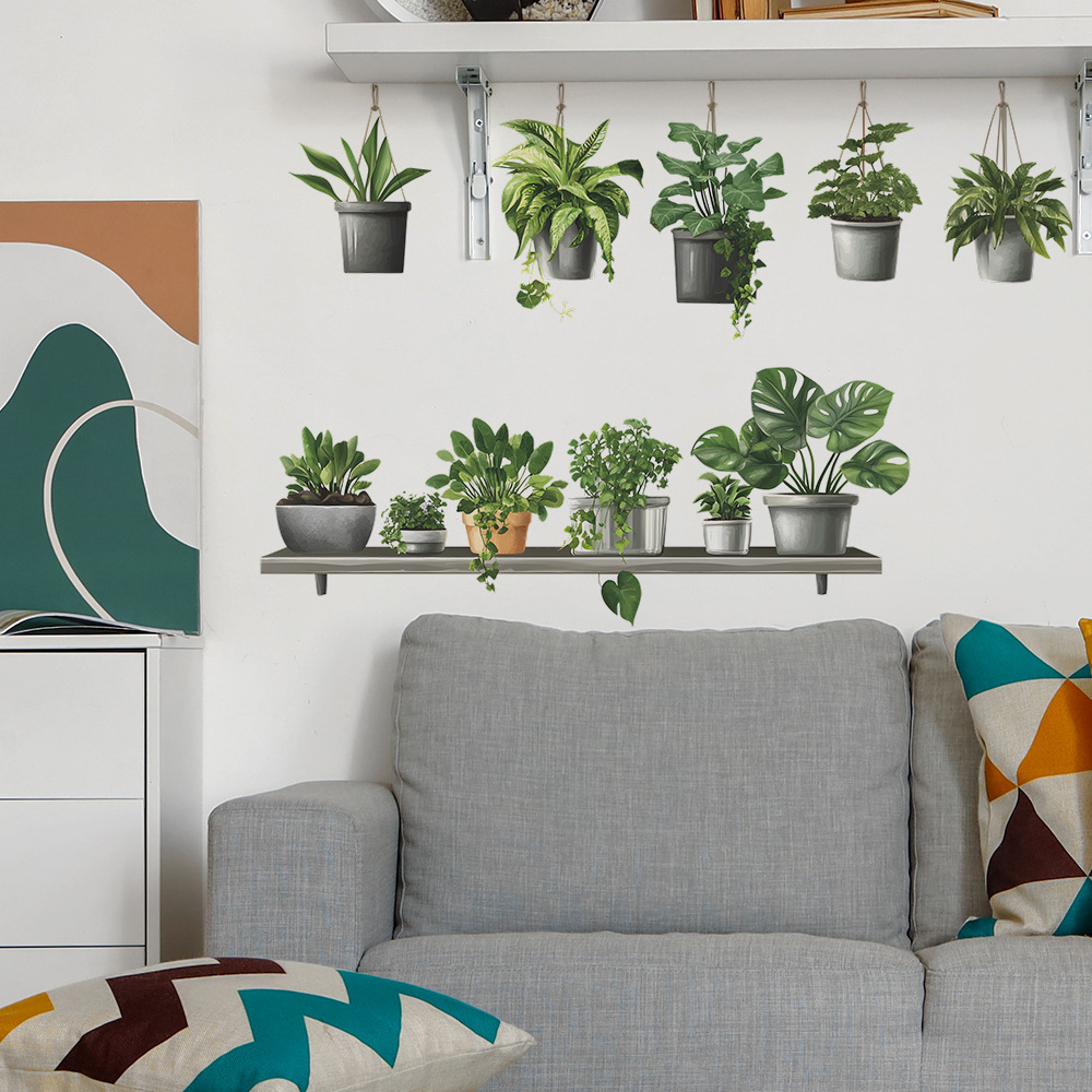 Fun-e203 대외 무역 교수형 바구니 녹색 식물 장식 침실 거실 집 배경 미화 장식 벽 스티커 도매
