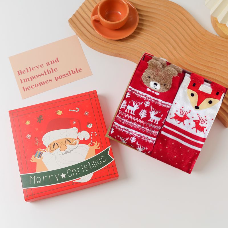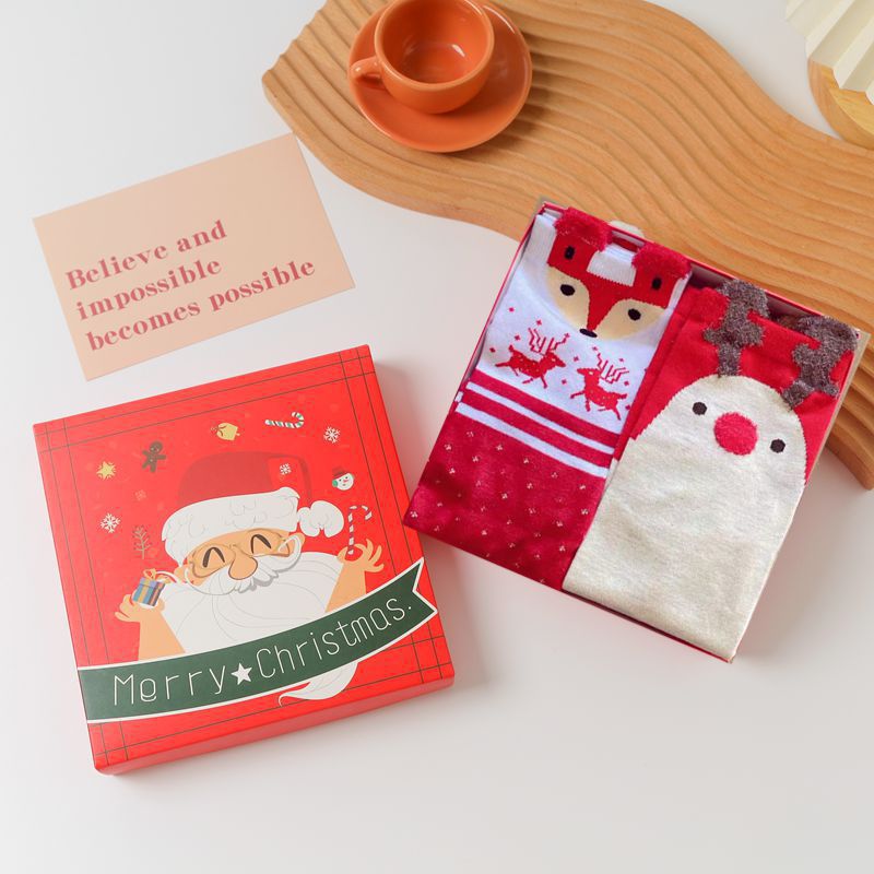 선물 박스 크리스마스 코튼 양말 여성의 겨울 따뜻한 미드 튜브 크리스마스 양말 어린이 귀여운 만화 엘크 여성용 양말