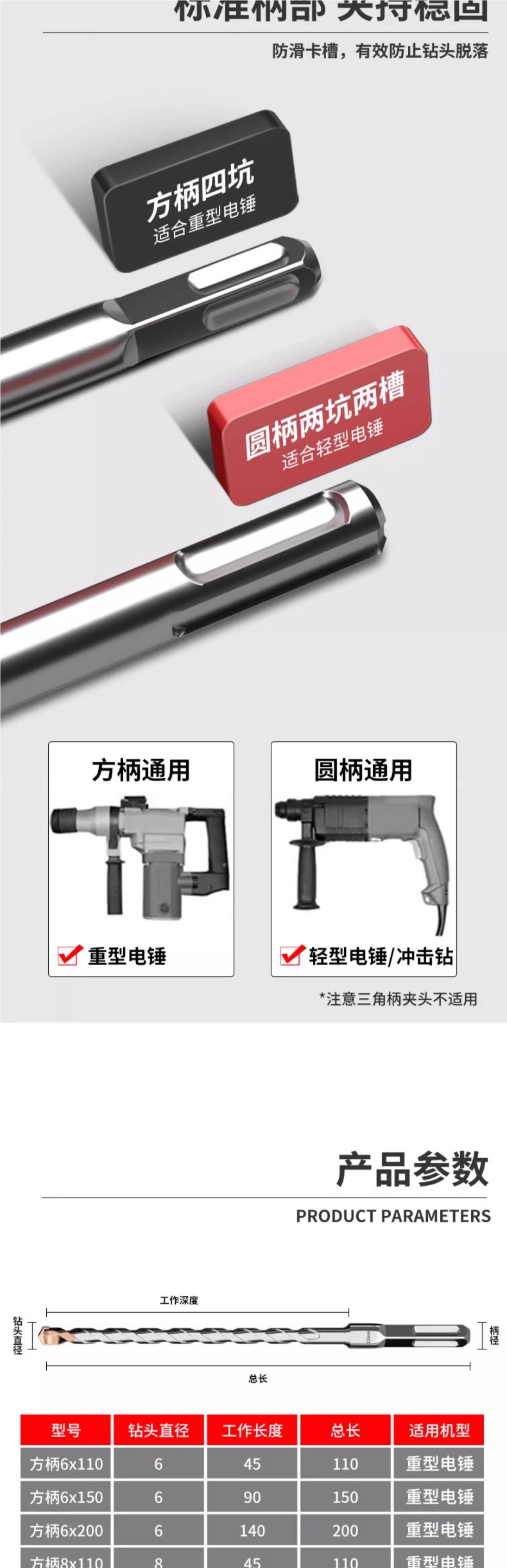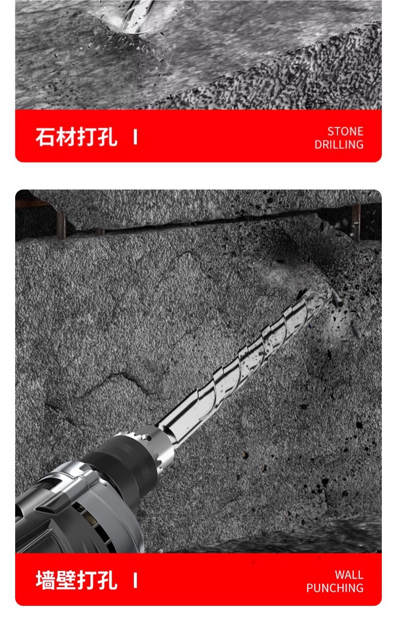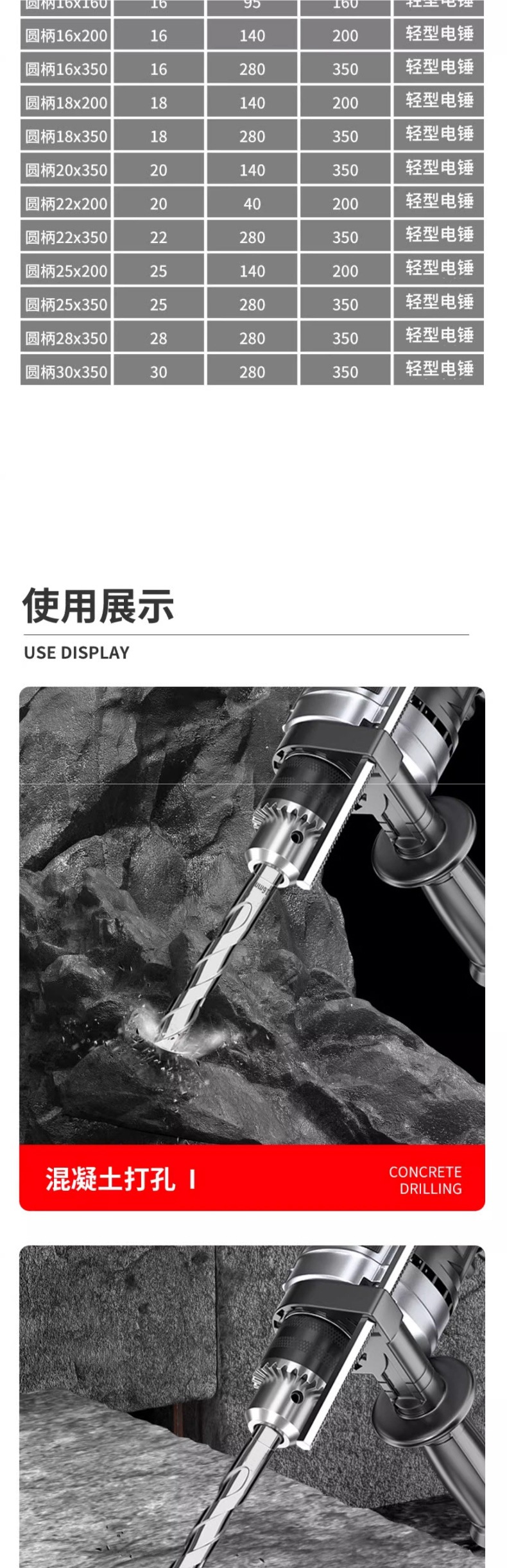 • 3세대 전동 해머 드릴 비트, 드릴링 수가 대폭 향상되었습니다.