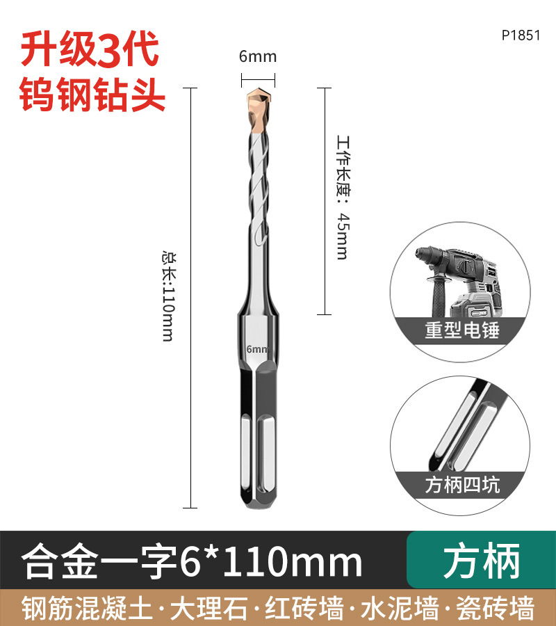 Niuxiang 타악기 드릴 벽 그루브 스퀘어 핸들 라운드 핸들 콘크리트 전기 시계 조명 드릴링 유니버설 턴을 통해 전기 해머스토어 가기