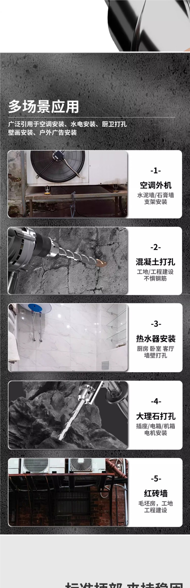 Niuxiang 타악기 드릴 벽 그루브 스퀘어 핸들 라운드 핸들 콘크리트 전기 시계 조명 드릴링 유니버설 턴을 통해 전기 해머