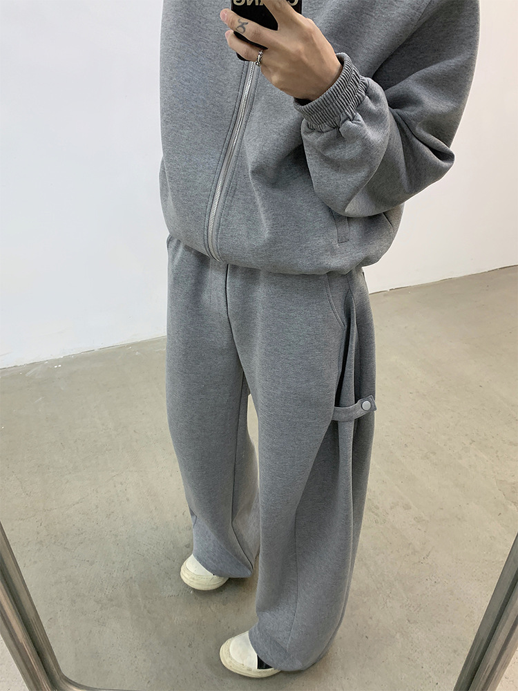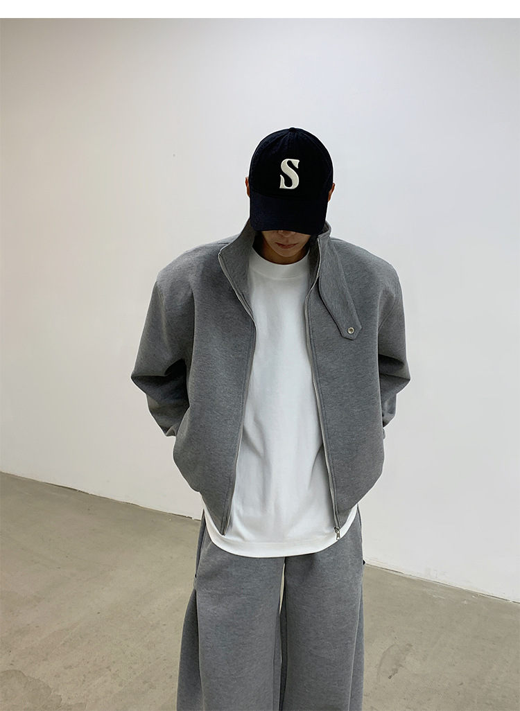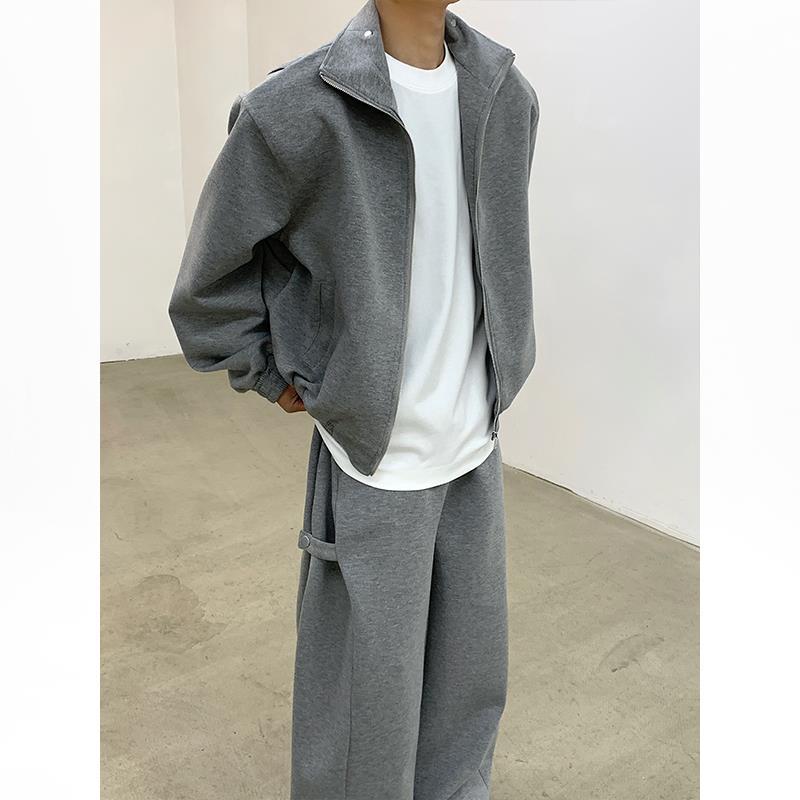 그레이 레트로 캐주얼 스포츠 스웨트 셔츠 남자의 2024 봄과 가을 새로운 하이 스트리트 통통한 잘 생긴 커플 솔리드 컬러 올 매치 옷스토어 가기