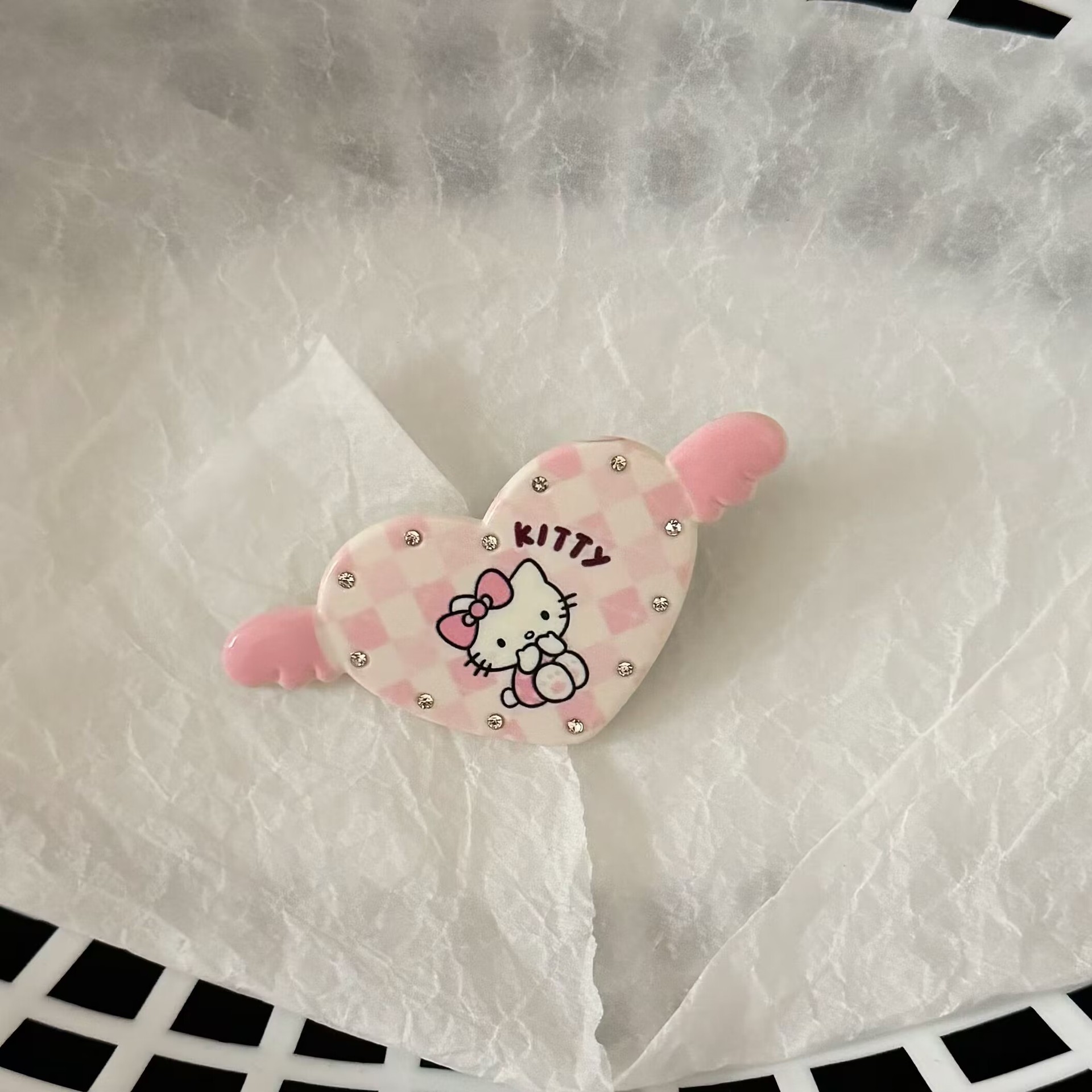 달콤한 멋진 스타일 격자 무늬 고양이 날개 머리핀 일본 스타일 달콤한 높은 아름다움 가치 소녀 스타일 덕빌 클립 헤어핀 헤어 액세서리 새로운 스타일스토어 가기