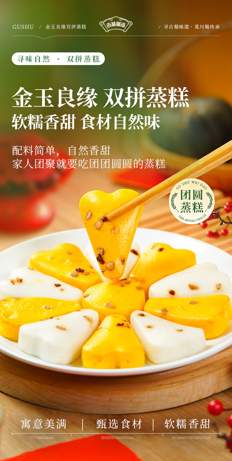 고대 슈 맛 찐 케이크 300g 황금 옥 양 위안 스폰지 케이크 더블 컬러 떡 호박 케이크 아침 반제품스토어 가기