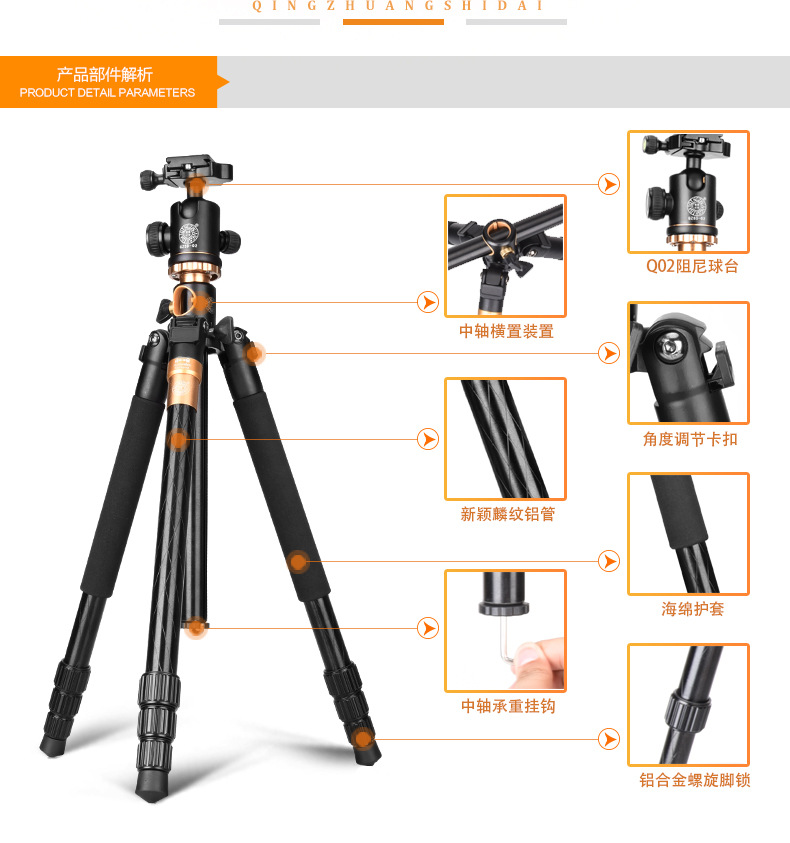 라이트 나이 Q999H 오버 헤드 삼각대 카메라 SLR 휴대 전화 휴대용 사진 센터 축 수평 삼각형 브래킷