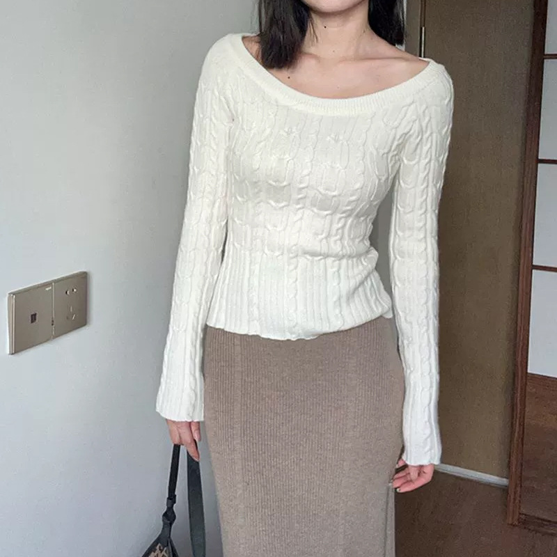 간단한 우아한 최고 여성의 가을과 겨울 하이 엔드 아메리칸 스타일 올드 프렌즈 지 레이첼 라운드 넥 트위스트 니트 어깨스토어 가기