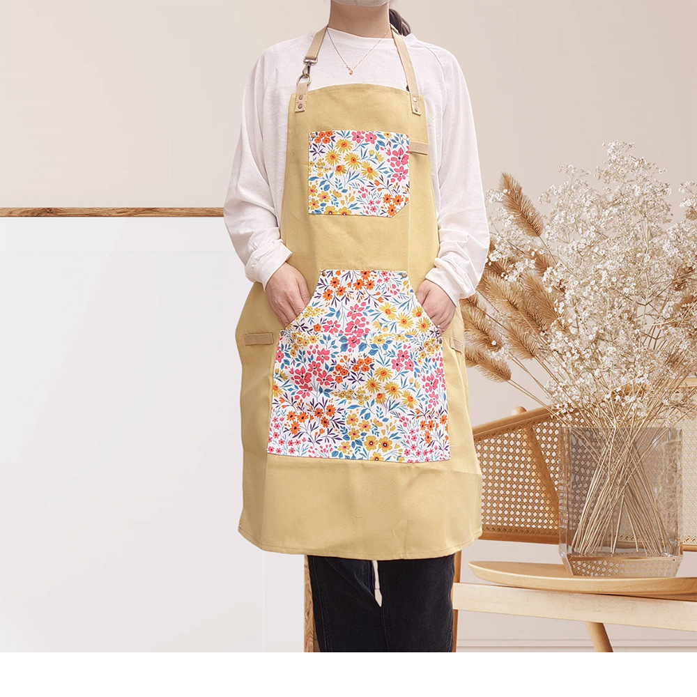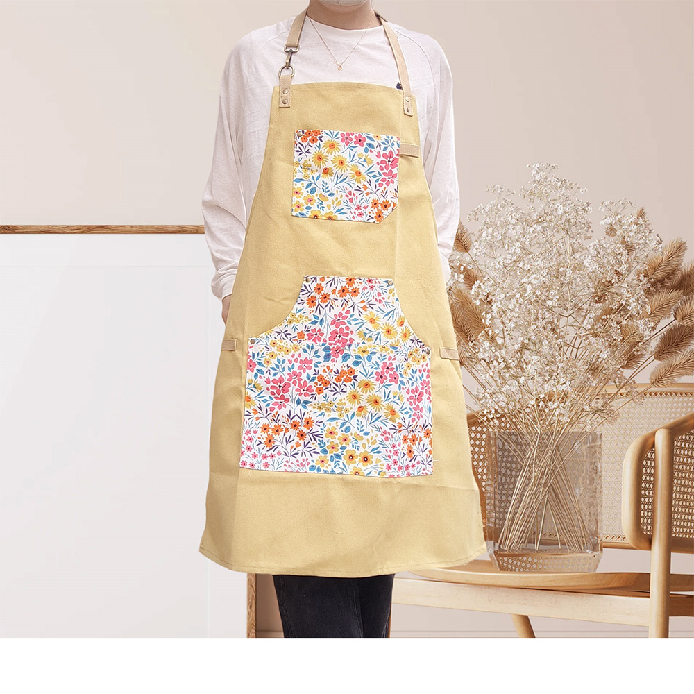 맞춤형 노란색 얇은 캔버스 프린트 포켓 고정형 넥 스트랩 커피숍 남성 바베큐 케이터링 앞치마 여성 작업복스토어 가기