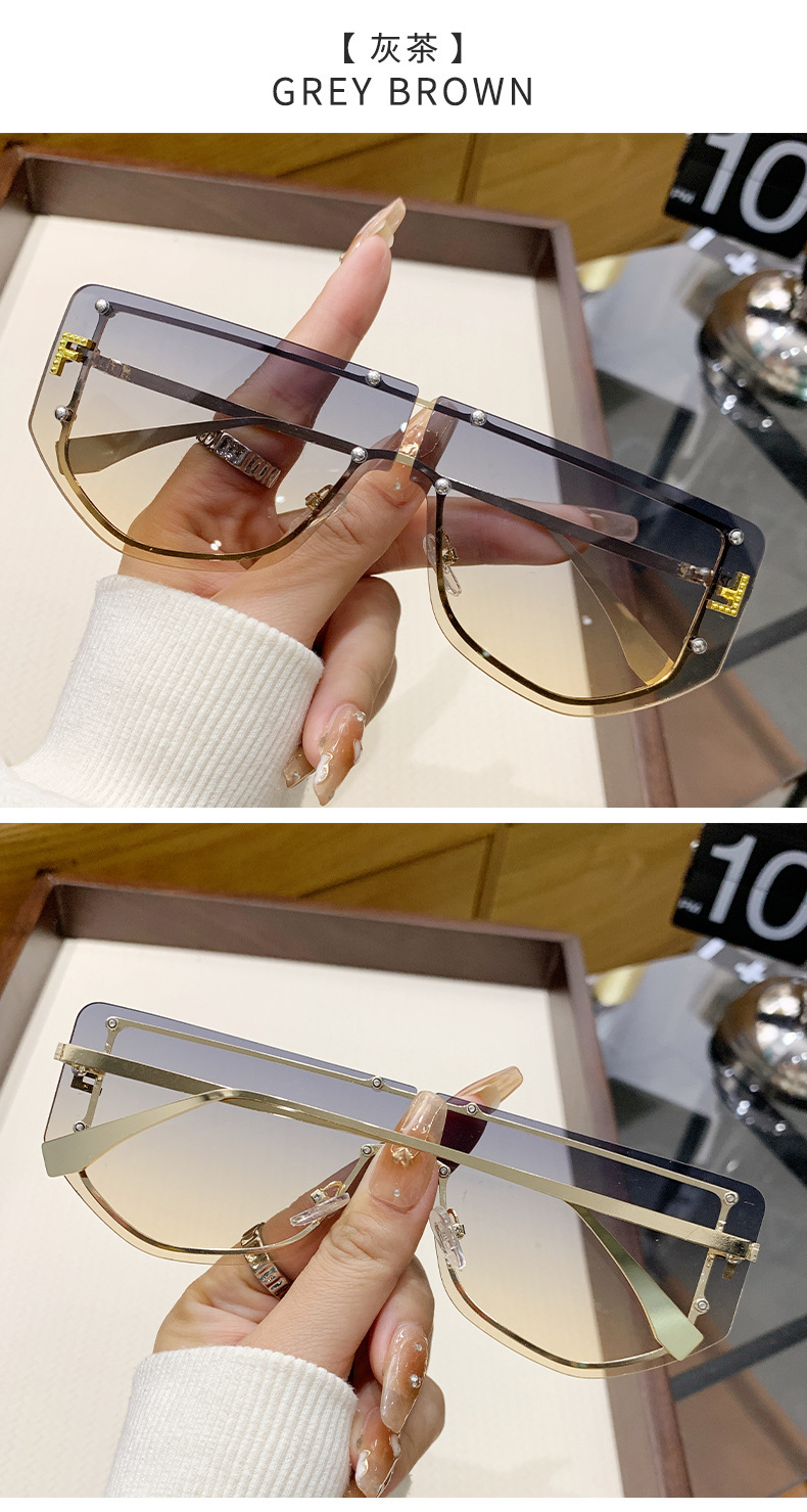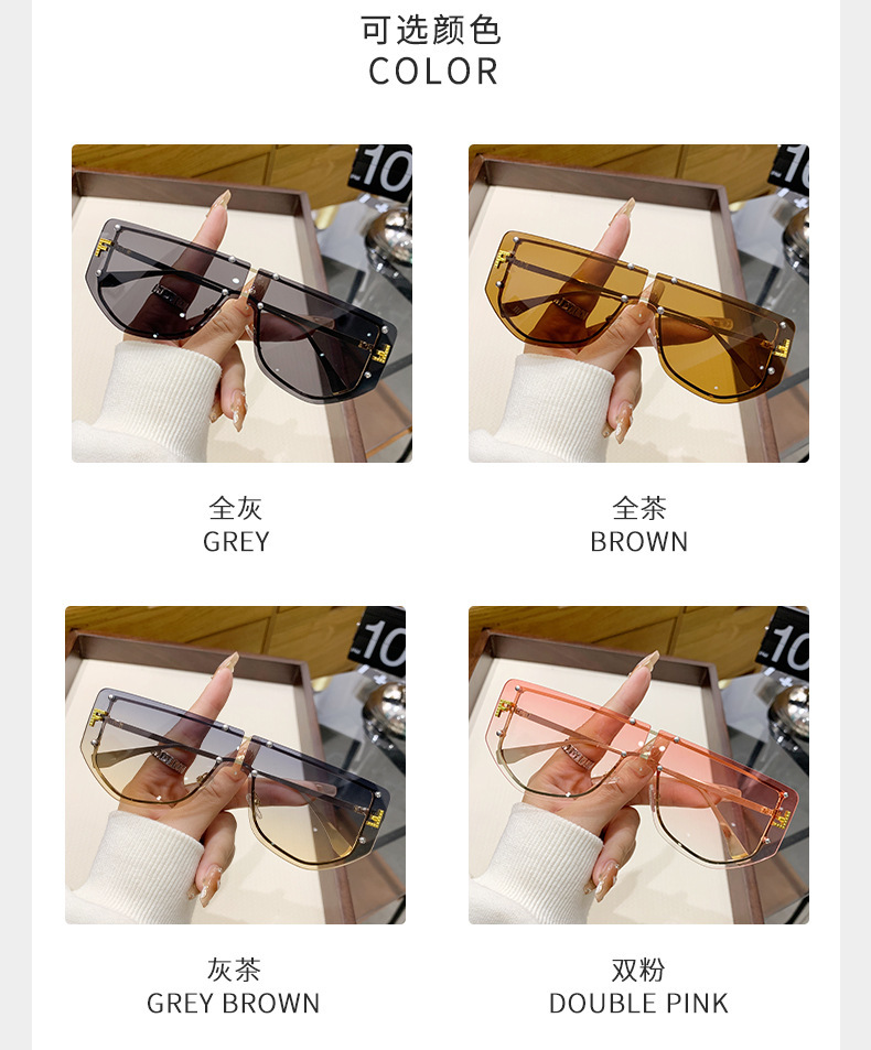 유럽과 미국의 원피스 선글라스 남성 하이 엔드 작은 프레임 원피스 패션 컷 금속 다각형 방풍 선글라스 여성