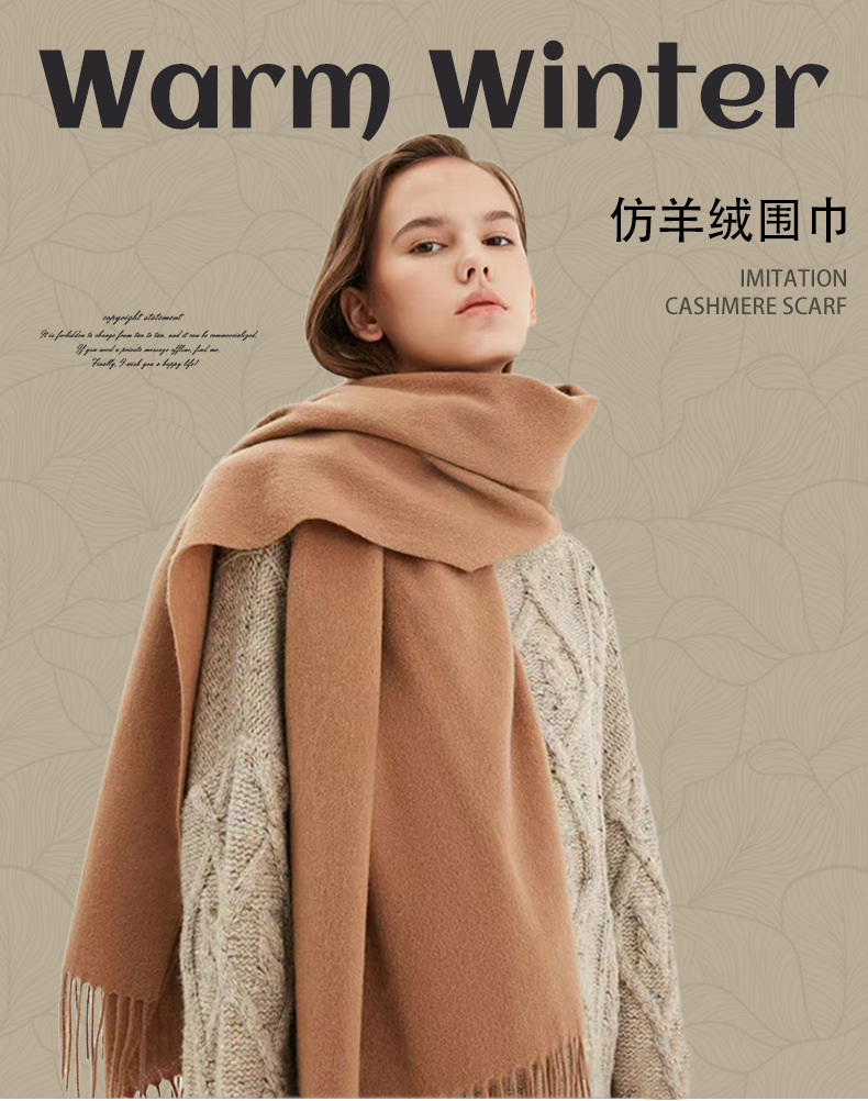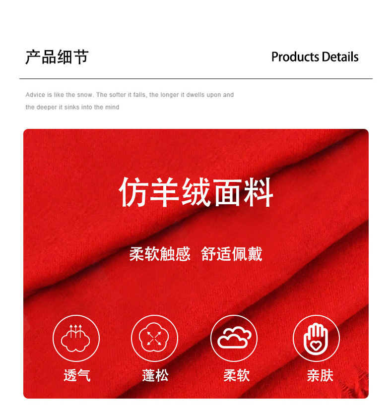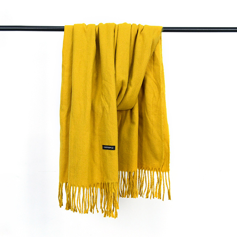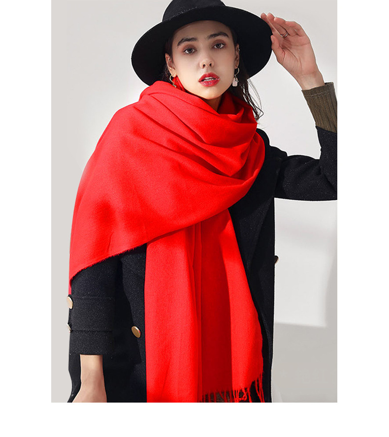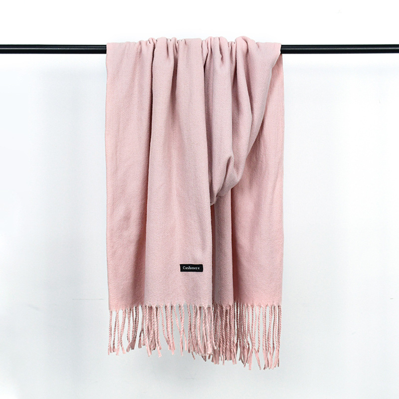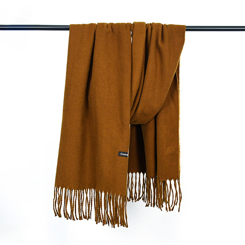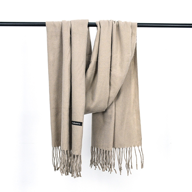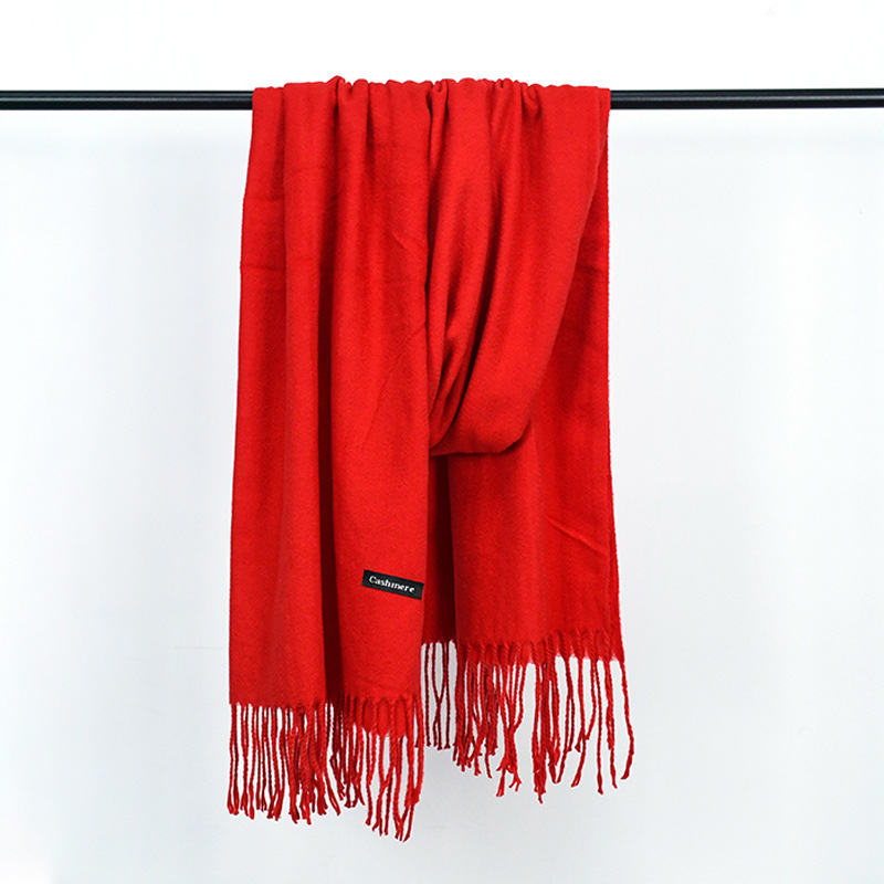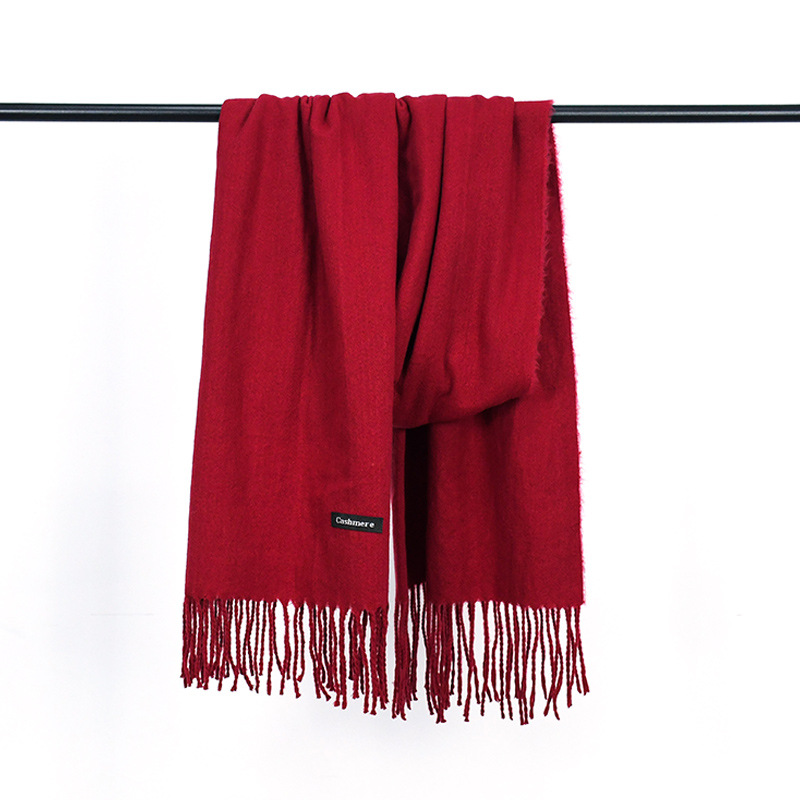 가을과 겨울 올매치 따뜻한 회색 스카프 여성 한국식 붉은 목도리 간단한 비즈니스 캐시미어 솔리드 컬러 두꺼운 스카프