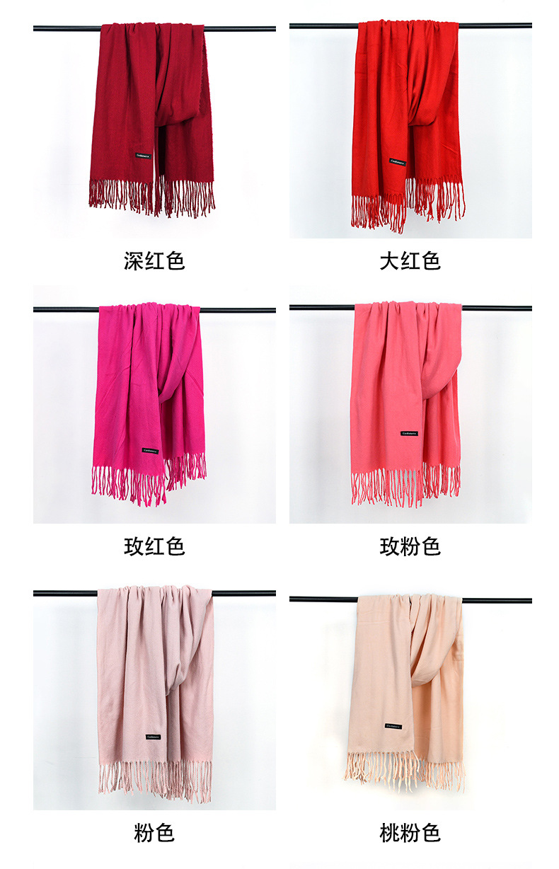 가을과 겨울 올매치 따뜻한 회색 스카프 여성 한국식 붉은 목도리 간단한 비즈니스 캐시미어 솔리드 컬러 두꺼운 스카프스토어 가기