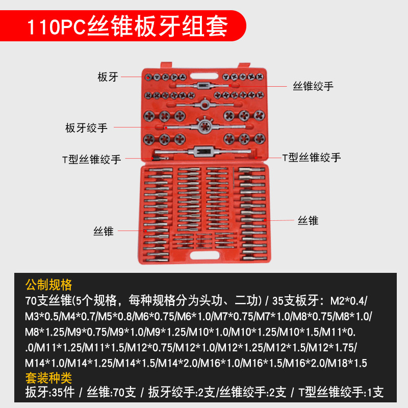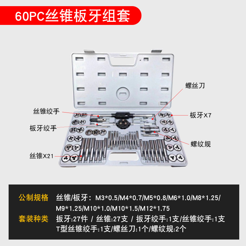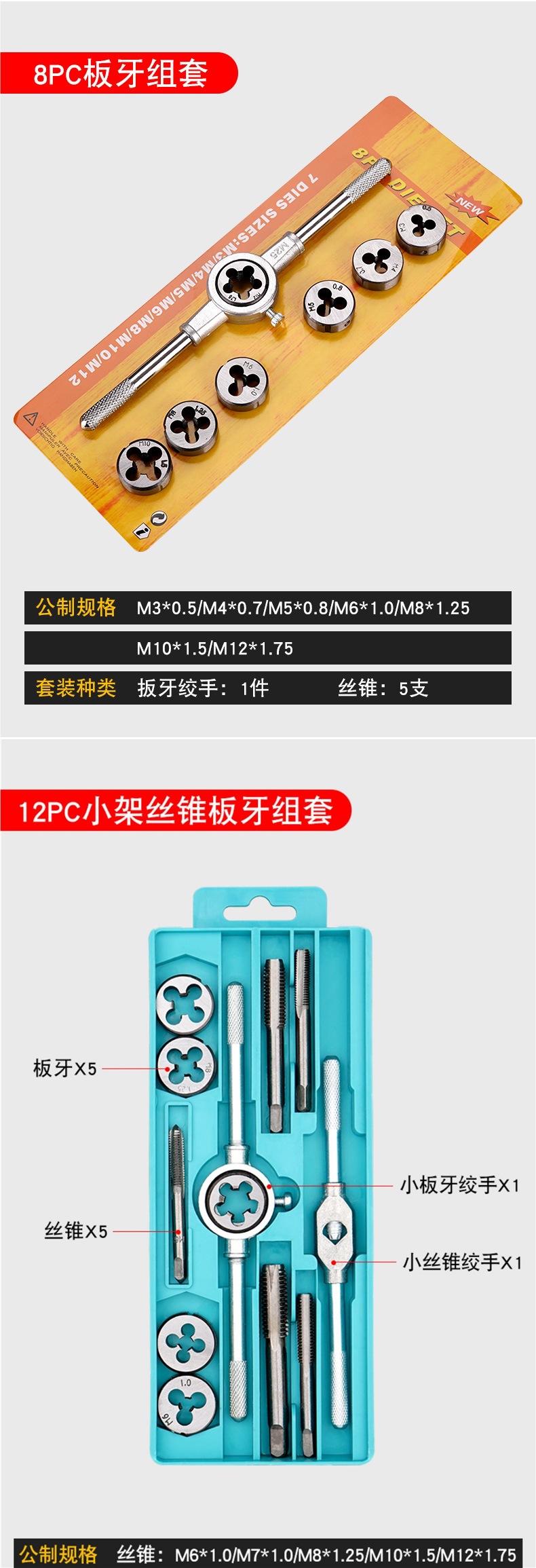 • 산업용 등급의 12PC 대형 탭 및 다이 세트