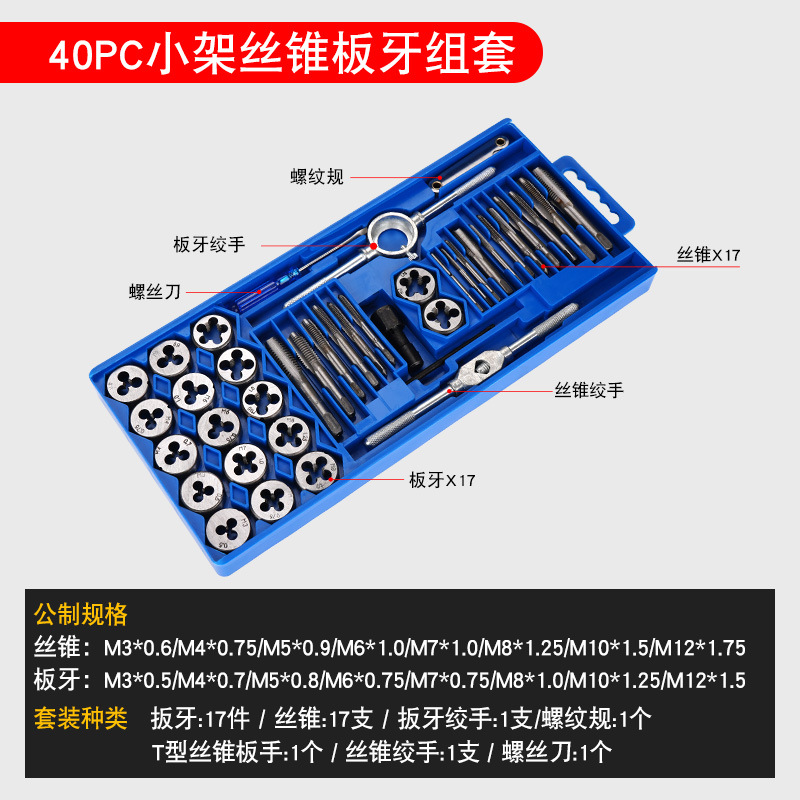 • 산업용 등급의 40PC 소형 프레임 탭 및 다이 세트
