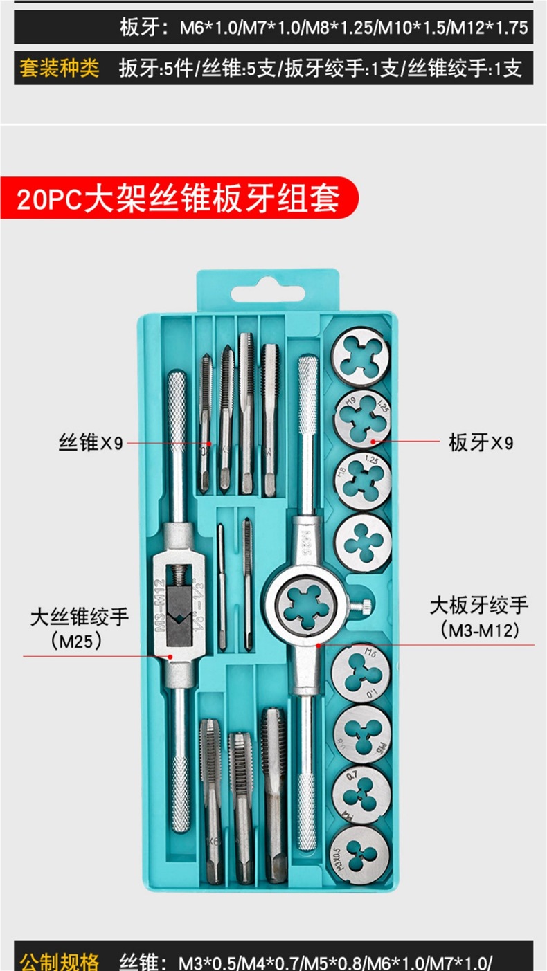 • 산업용 등급의 20PC 대형 탭 및 다이 세트