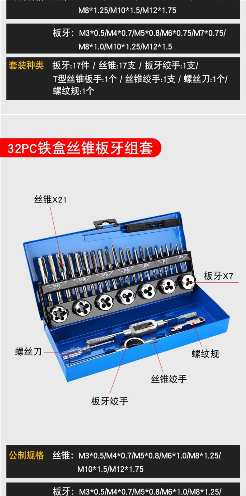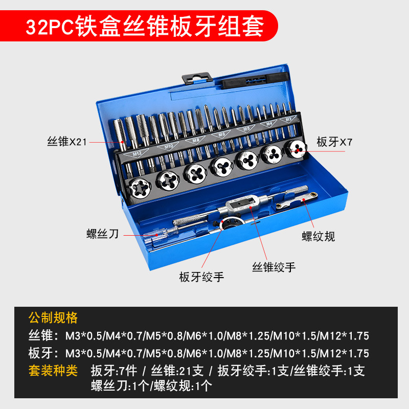 • 32PC 철 상자 탭 및 다이 세트 전문 등급