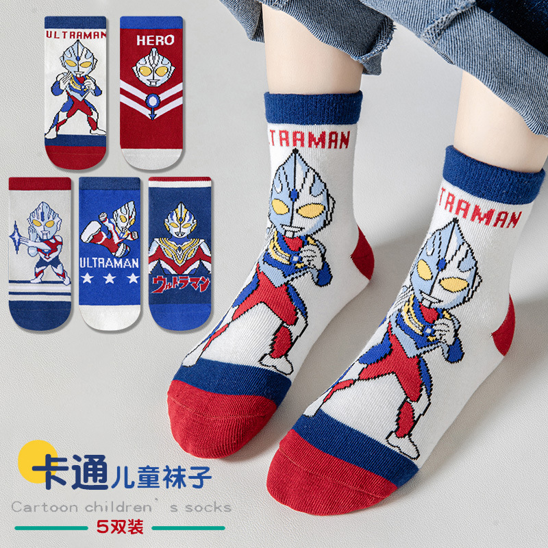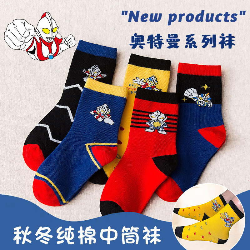 울트라 맨 어린이 양말 봄과 가을 중간 길이 양말 소년 소년과 아기를위한 귀여운 만화 면 양말 가을과 겨울 얇은 스타킹