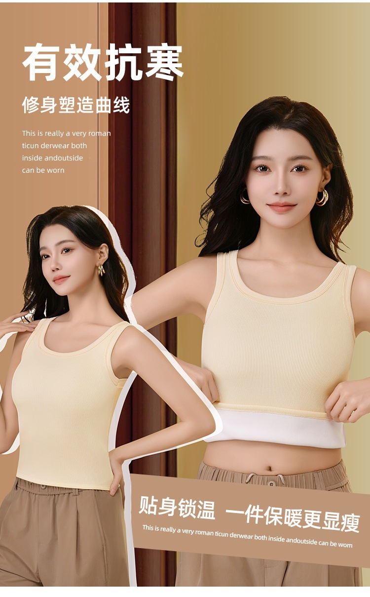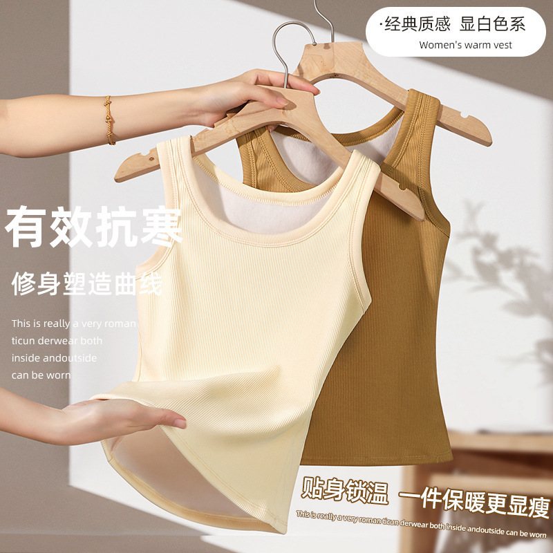 가을과 겨울의 인기있는 한국어 버전 기모 두꺼운 열 조끼 속옷베이스 슬림 외부 따뜻한 조끼 민소매 탑