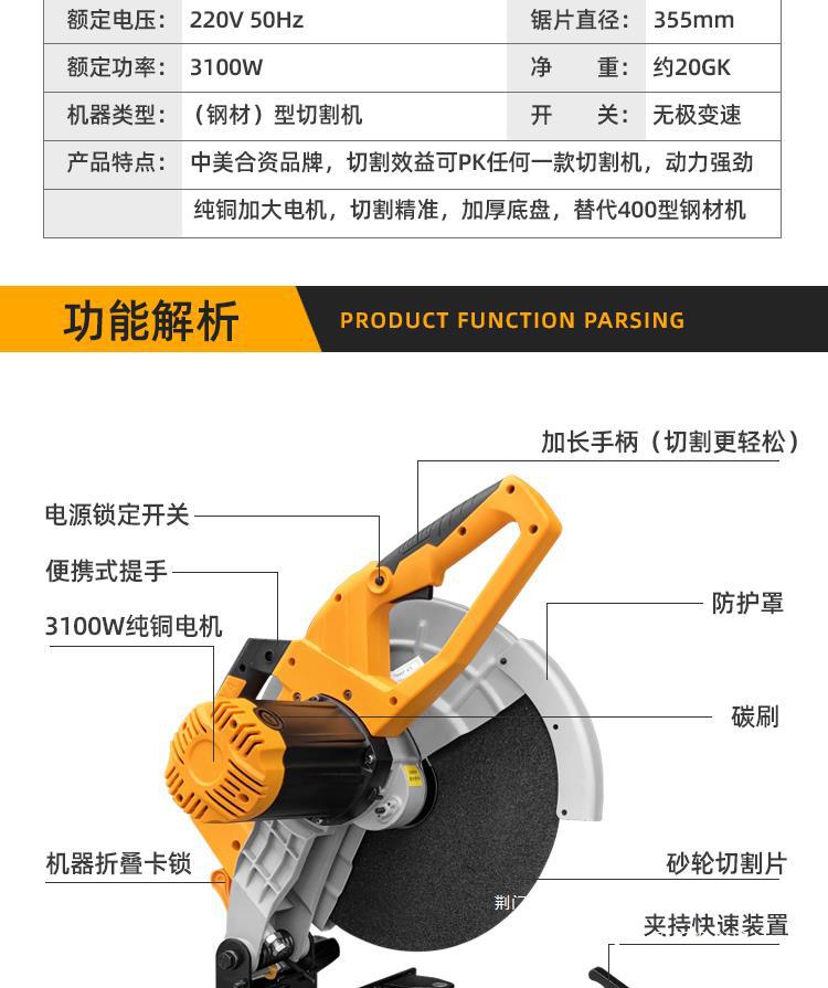 강철 기계 350 다기능 355 가정용 절단기 목재 원형 강철 다각도 각도 철 프로파일 절단기