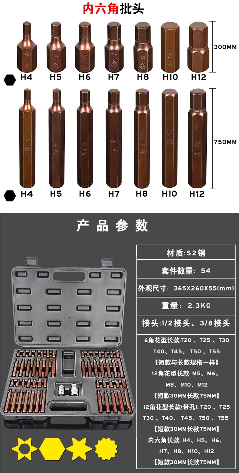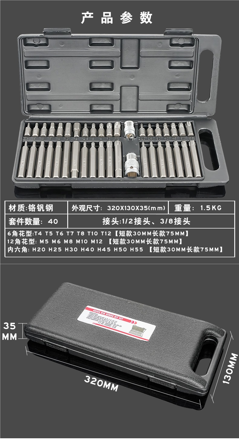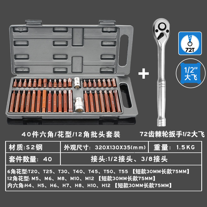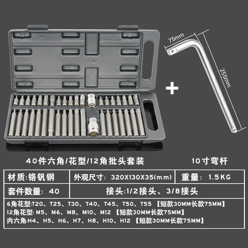 별 배치 세트 육각형 소켓 H 12 각 매화 M 스플라인 T 자형 분해 카시트 특수 배치 헤드 세트 40 개스토어 가기