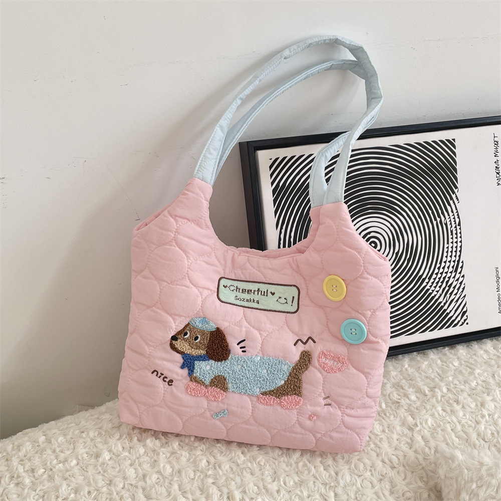 411231 게으른 스타일 학생 클래스 배낭 귀여운 자수 강아지 대비 어깨 가방 대용량 토트 백