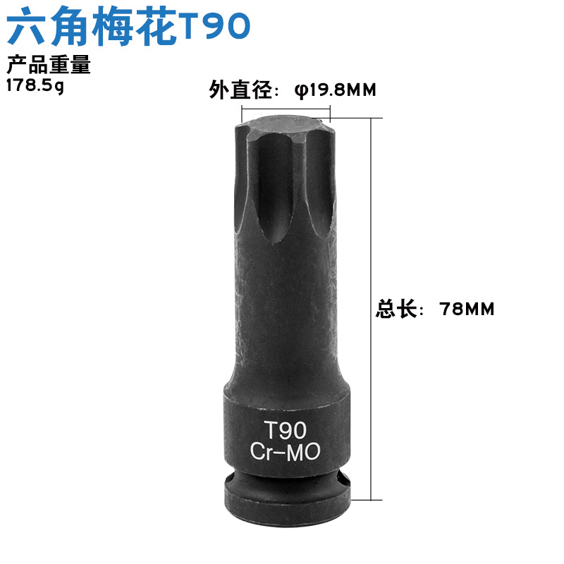 1/2 대형 비행 내부 육각형 매화 공기 대포 결합 된 헤드 공압 스크류 소매 세트 T 자형 내부 육각형 꽃 공기 대포 결합 헤드