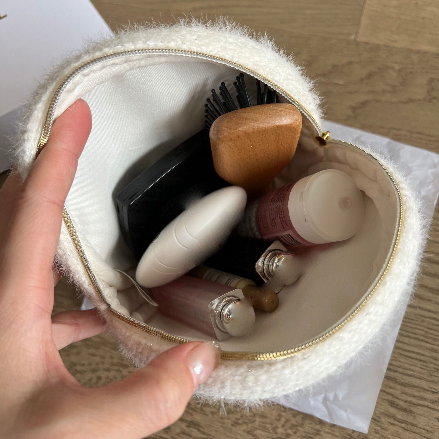 크리스마스 의례 VIP 벨벳 메이크업 가방 대용량 저장 패션 봉제 라운드 케이크 가방 화이트 크리스마스 작은 라운드 가방스토어 가기