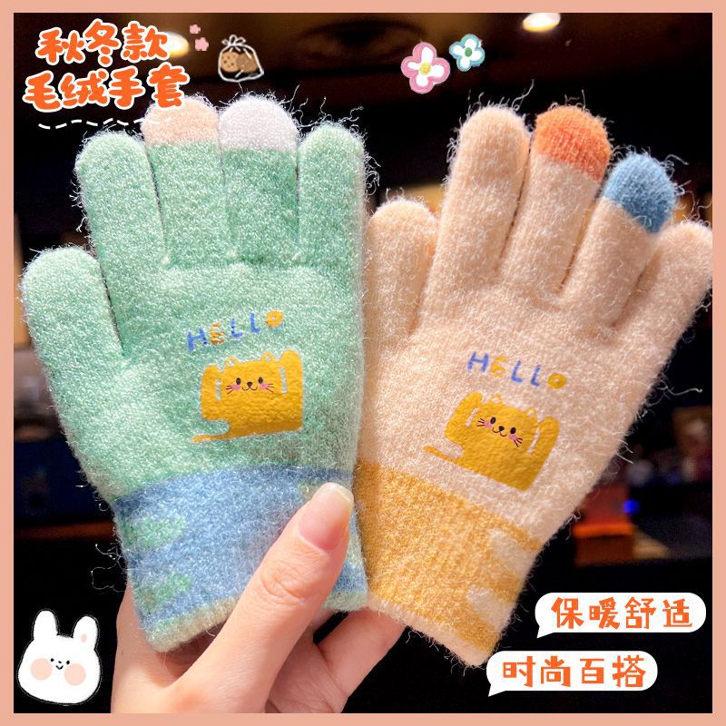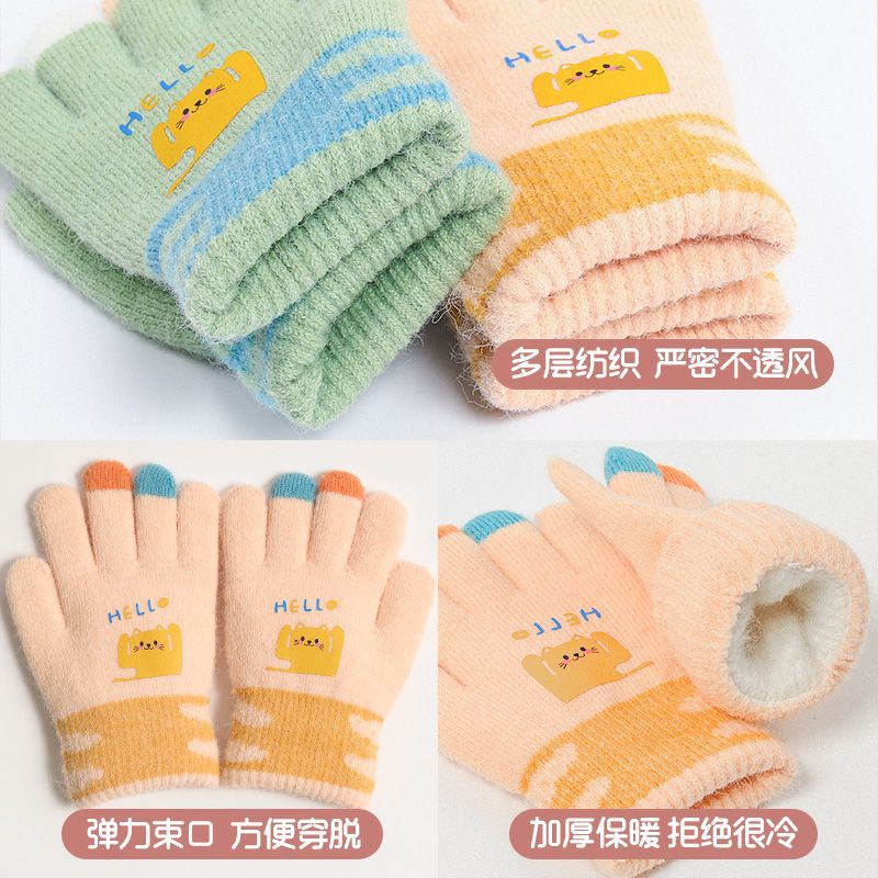겨울을위한 양모 아기 니트 5 손가락 슬리브를 기모 소녀와 소년에게 따뜻한 어린이와 소녀를위한 가을과 겨울 어린이 장갑스토어 가기