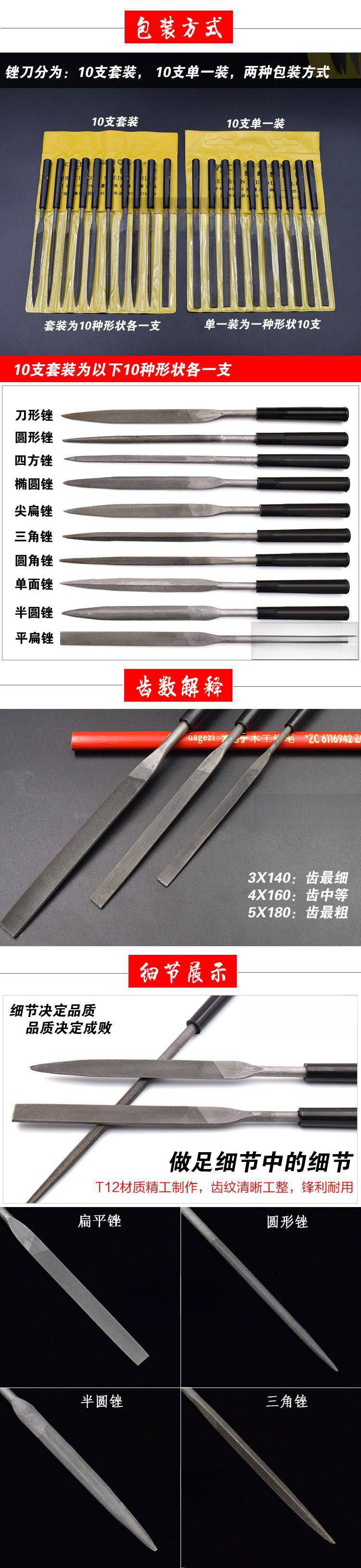 10 세트 상하이 노동자 모듬 파일 칼 플라스틱 강철 파일 반원 평면 삼각형 금속 bodhi 호두 연삭 도구스토어 가기